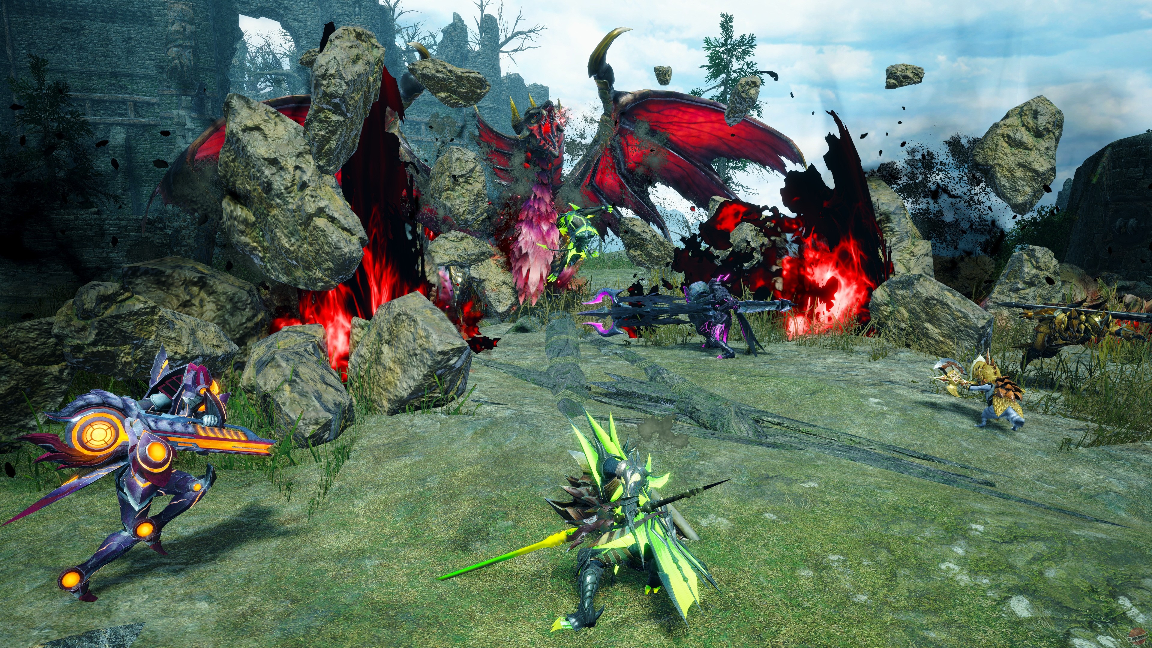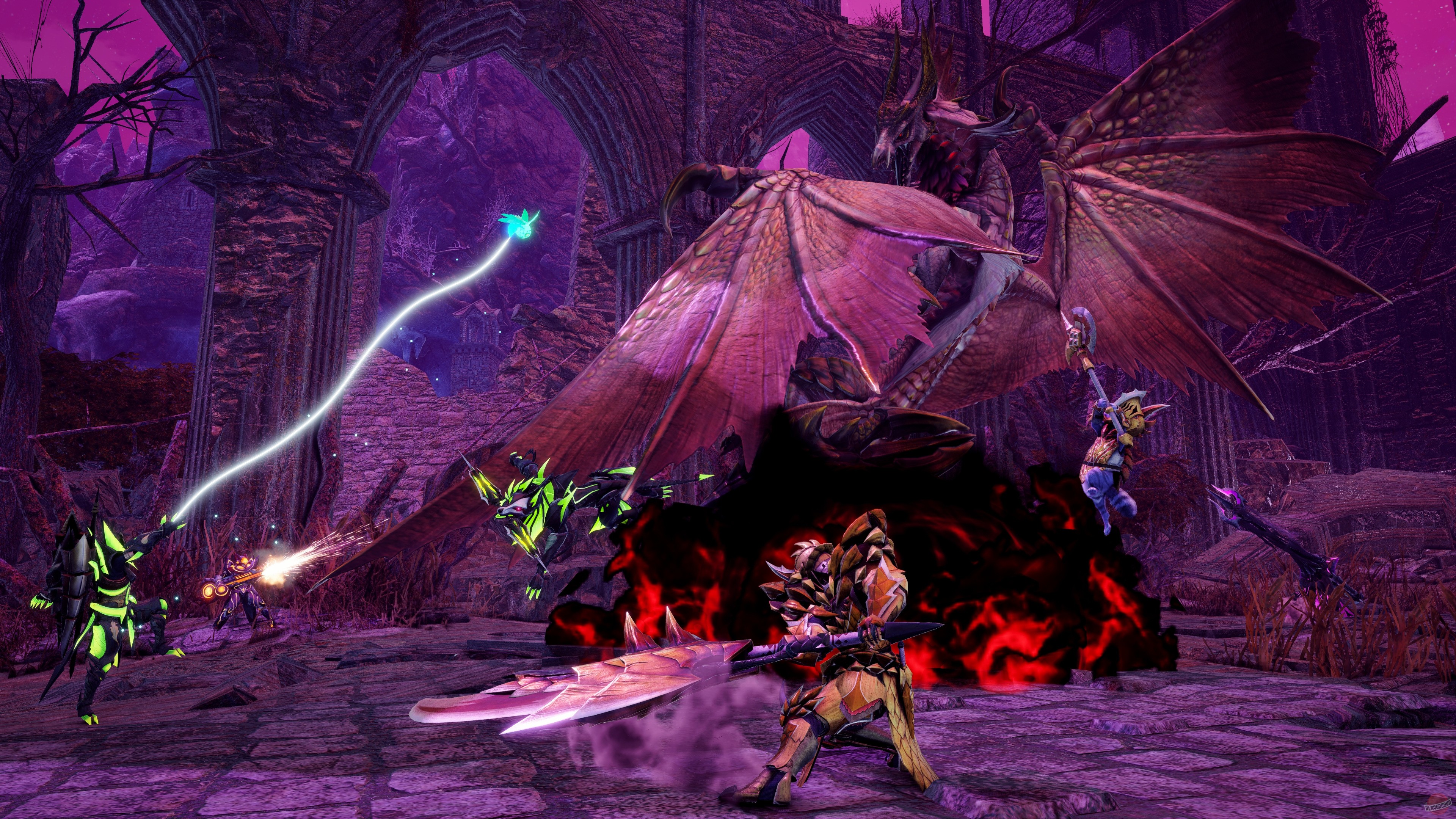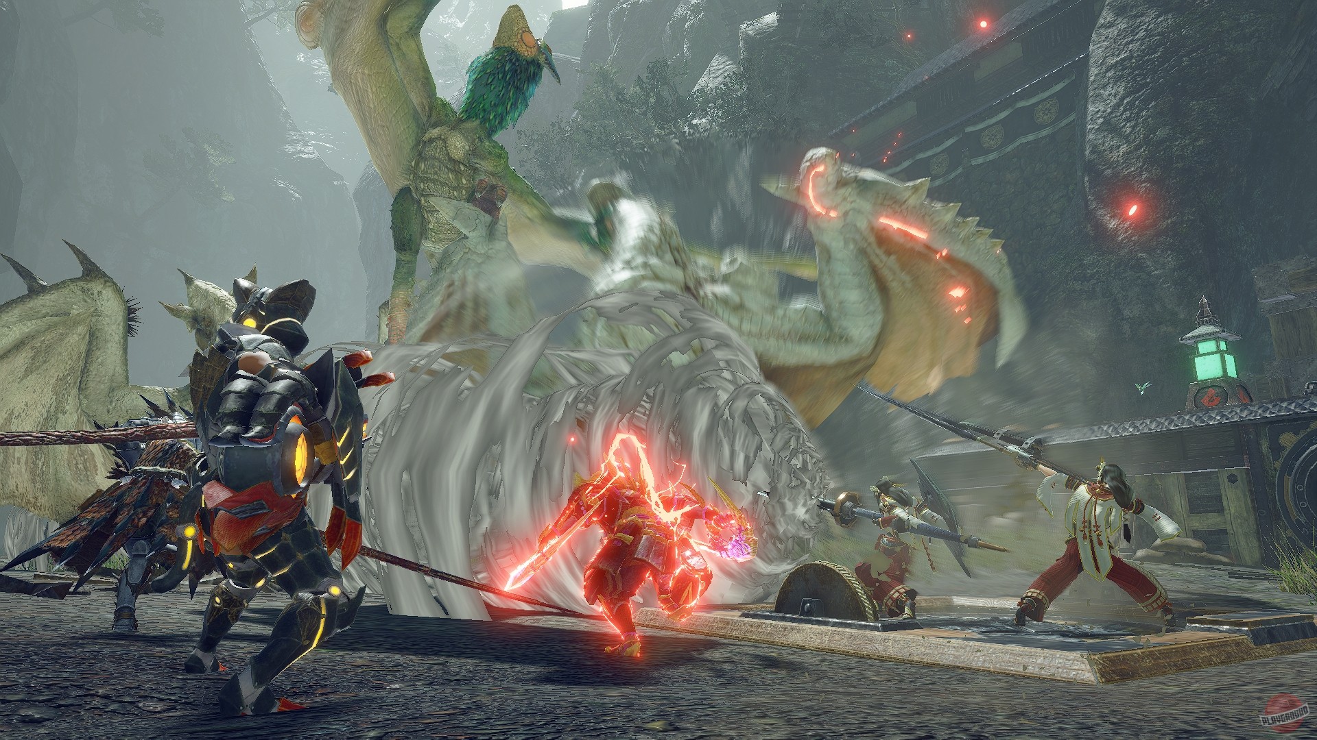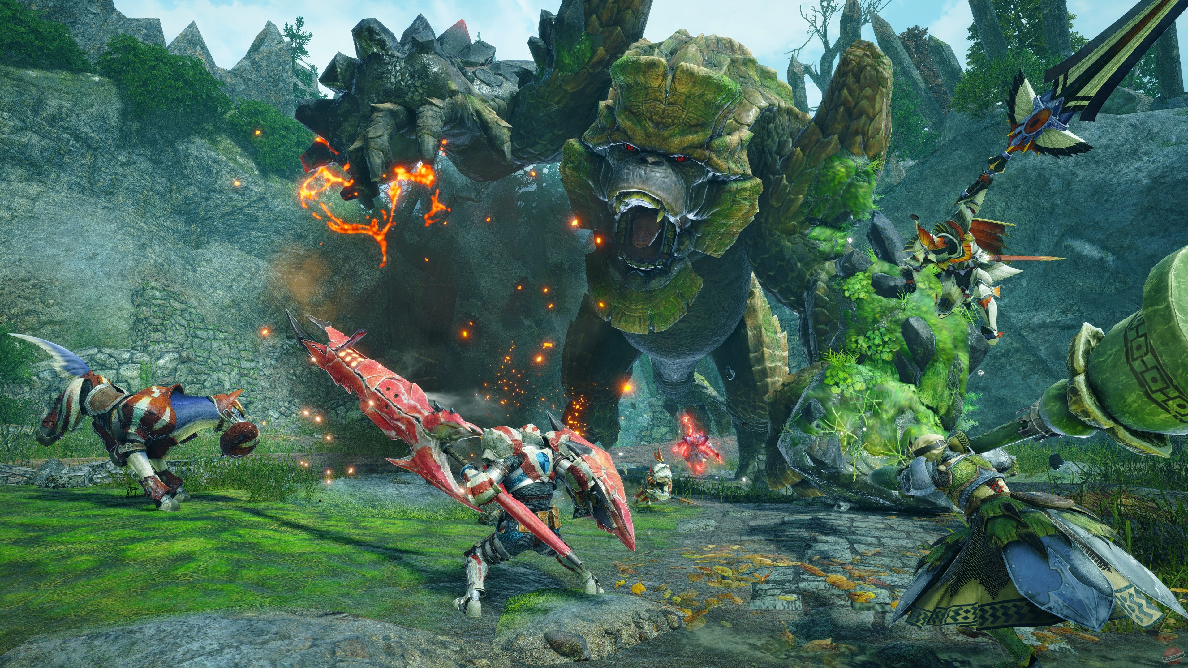 Monster Hunter Rise - это игра из серии Monster Hunter для портативной Nintendo Switch и PC, созданная на базе движка RE Engine. Игроков ждет путешествие в мир, полный опасных монстров, в который можно взять нового для серии компаньона - собаку - который служит еще и транспортным средством. Игроки должны исследовать мир, охотиться на монстров и всячески улучшать свое снаряжение для грядущих битв. Также Rise предлагает игрокам не только охотиться, но и защищать собственную деревню от набегов монстров.