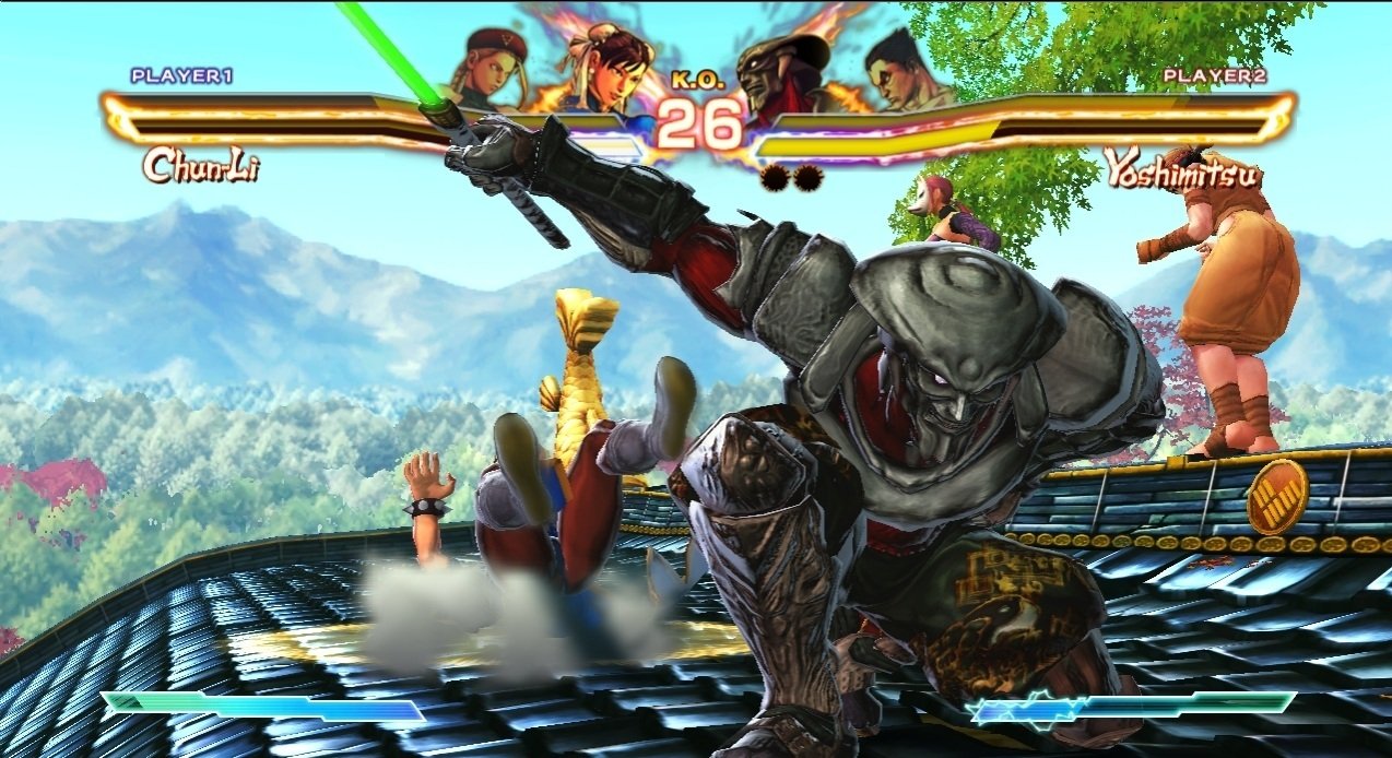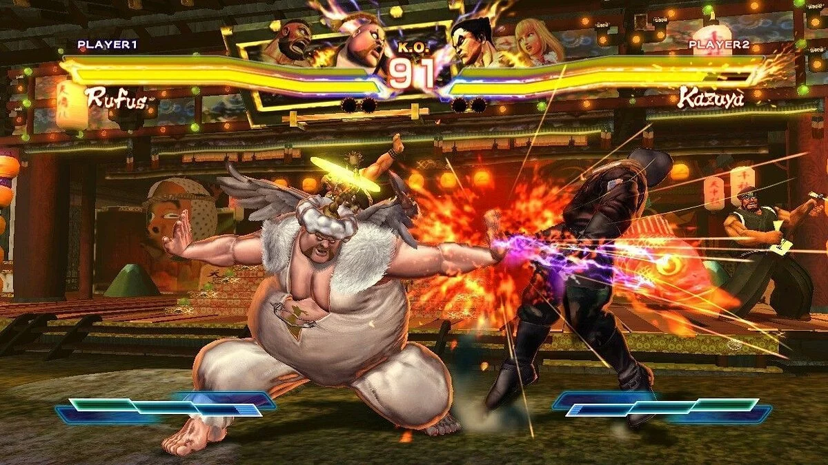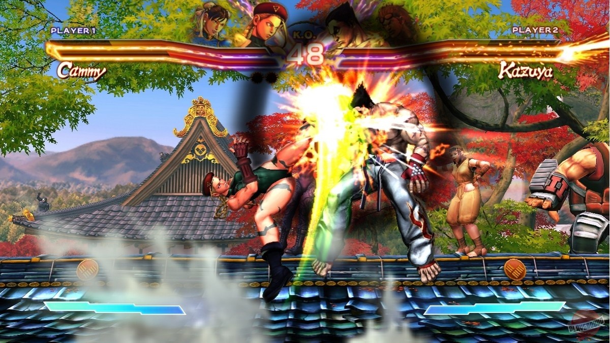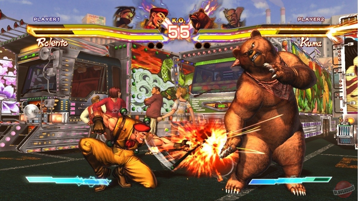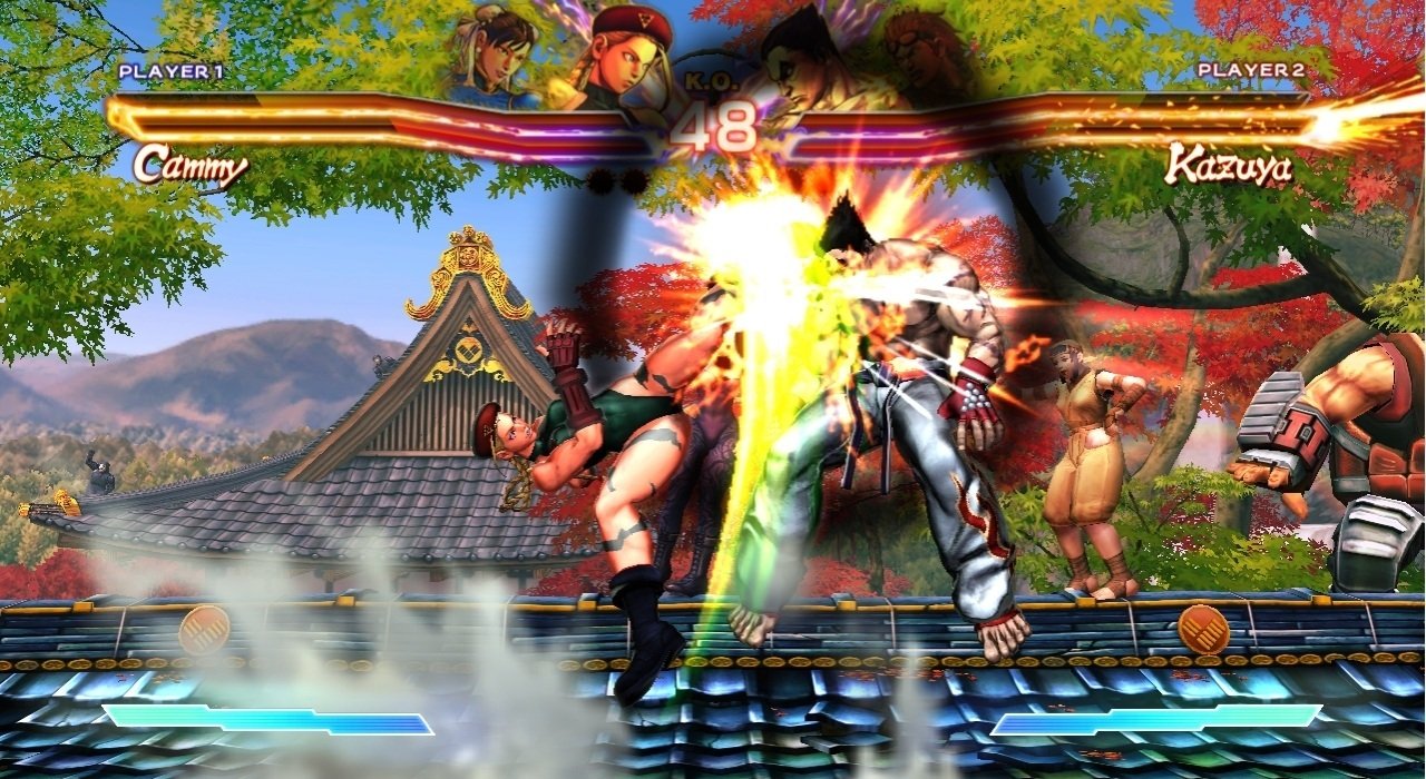 Геймплей Street Fighter x Tekken — это любовное письмо фанатам классических 2D-файтингов, завернутое в сочную 3D-графику в стиле Street Fighter IV. Вас ждут динамичные схватки на двумерной плоскости, где каждая комбинация, каждый блок и каждый идеально выполненный «Супер» решают исход боя. Но главная изюминка — система Tag Team: вы выбираете двух бойцов, и они сражаются вместе. Причем побеждает не тот, кто просто больше всех поколотил, а команда, чей первый боец сумел выстоять до конца раунда. Это добавляет стратегии: то ли вы будете агрессивно добивать одного противника, то ли экономить здоровье своего лидера, рискуя потерять партнера. И да, если вы думали, что Чунь-Ли и Кинг (тот самый, в маске ягуара) — странная пара, подождите, пока не увидите Дэна Хибики в одной команде с… кем бы то ни было. Это же Дэн!