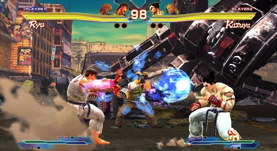 Представьте себе: Рю, сосредоточенно шепчущий «Хадоу-кен!», вдруг получает по лицу от Казуи Мисимы, который, не моргнув глазом, бросает его через всю арену. Звучит как начало странного сна фаната файтингов? Нет, это реальность в Street Fighter x Tekken! Эта культовая игра — не просто кроссовер, а настоящий мировой конгресс ударных искусств, где легендарные персонажи из двух величайших вселенных файтингов, Capcom и Namco, забывают о своих корнях и устраивают эпические бои два на два. Готовьтесь к тому, что ваш любимый герой из Street Fighter может оказаться в команде с тем самым парнем из Tekken, которого вы последний раз видели, когда случайно нажали на диск в прокате в 90-х.