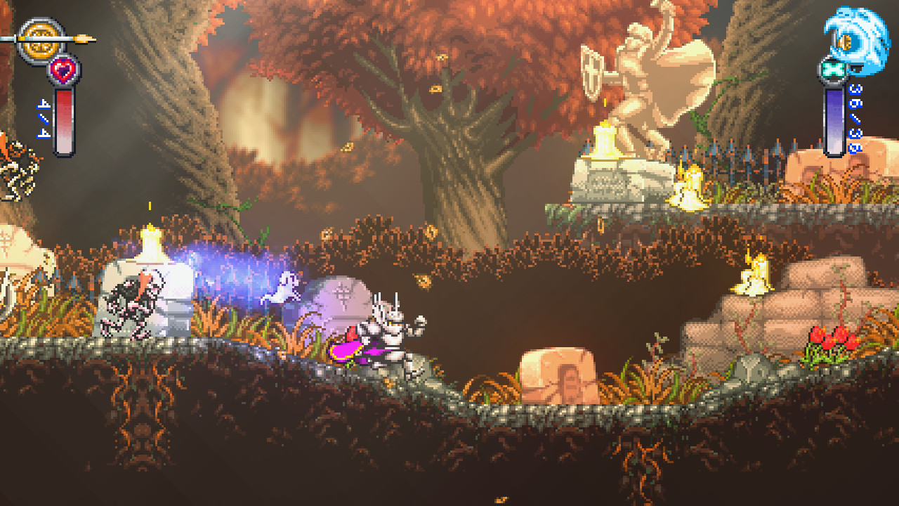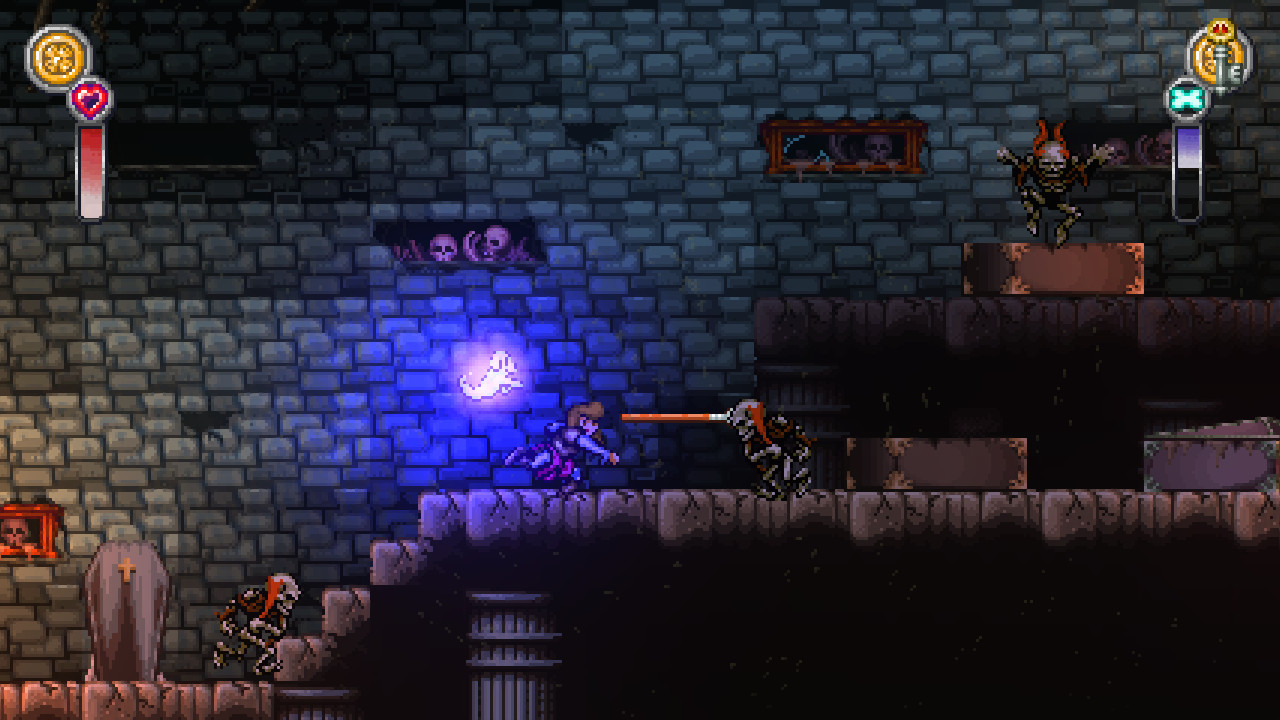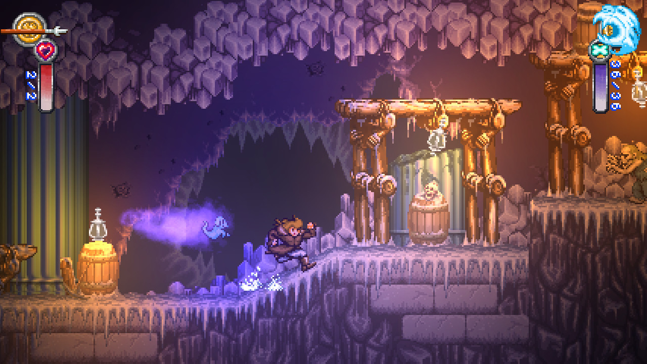 Геймплей Battle Princess Madelyn — это чистый, неразбавленный ретро-экшен с современными удобствами. Вас ждут два основных режима: Story Mode для тех, кто хочет погрузиться в трогательную историю о потере, мужестве и мести (да-да, всё серьёзно!), и Arcade Mode для фанатов безжалостной сложности и стремления к высоким результатам. Вы будете прыгать по ловушкам, рубить полчища скелетов, гоблинов и прочей нечисти, открывать новые способности и экипировку, чтобы стать ещё сильнее. Каждый уровень — это новый вызов, каждый босс — уникальная головоломка, требующая не только быстрых пальцев, но и стратегического мышления. Анимации персонажей настолько живые и детализированные, что иногда кажется, будто вы смотрите старый мультфильм, только с возможностью управлять главной героиней и отправлять её врагов прямиком в преисподнюю.