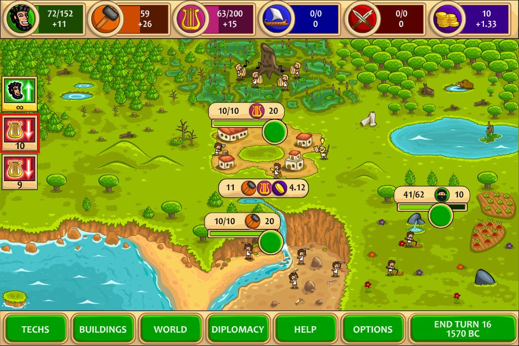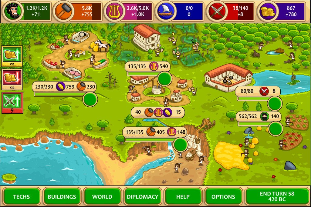 Забудьте про оливковые венки и скучные уроки истории! В Pre-Civilization Marble Age вы не просто изучаете Древнюю Грецию — вы ее строите, причем с нуля и по своим правилам. Это пошаговая стратегия-симулятор, где вместо того, чтобы зубрить даты битв, вы сами решаете, будет ли ваша цивилизация процветать благодаря мраморным статуям или грозным гоплитам. Представьте себе: вы начинаете с жалкой деревушки, пары крестьян и мечты. Ваша задача — превратить эту мечту в могущественное государство, управляя пятью ключевыми ресурсами: едой, древесиной, камнем, мрамором и... золотом, конечно же! Ведь даже в Античности без него никуда.