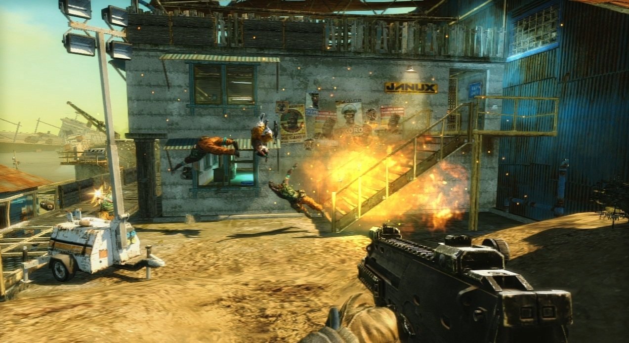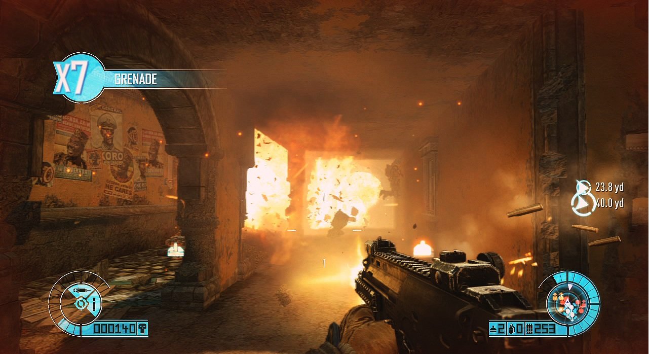 Главная звезда Bodycount — это, конечно же, ее знаменитая разрушаемость окружения на движке EGO. Стены, баррикады, укрытия — все это не более чем временные помехи для вашего пулемета. Хотите выстрелить прямо сквозь стену, чтобы застать врага врасплох? Пожалуйста! Мечтаете наблюдать, как целое здание превращается в облако пыли после точного попадания гранаты? В этой игре ваши мечты сбудутся! Геймплей построен вокруг этого принципа: вы не прячетесь за укрытиями, вы их уничтожаете. Это создает динамичный и хаотичный бой, где тактика сводится к одному — огонь, еще больше огня и контроль над полем боя через тотальное разрушение. За стильные убийства, кстати, вас ждет система начисления очков, очень напоминающая ту, что была в Bulletstorm, так что старайтесь быть не просто эффективным, а эффектным!