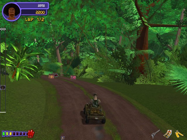 Забудьте про скучные гонки по идеальным трассам! В Freaks! Slammin' Traffic вас ждёт настоящий хаос на колёсах, где правила дорожного движения — это просто смешная бумажка. Эта аркадная гоночная игра от Coyote Software — это как если бы «Безумный Макс» пересекся с мультфильмом на пикнике у сумасшедшего учёного. Вашими соперниками станут самые колоритные персонажи: от накачанного до невозможности солдафона с бицепсами размером с капот до парня с афропричёской, который, кажется, может устроить дискотеку прямо за рулём. И да, все они вооружены до зубов! Это не просто гонка, это боевая арена на скорости, где ваш главный инструмент — не только газ, но и всевозможные «аксессуары» для вежливого общения с оппонентами на дороге.
