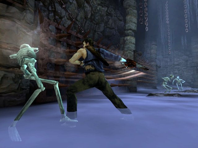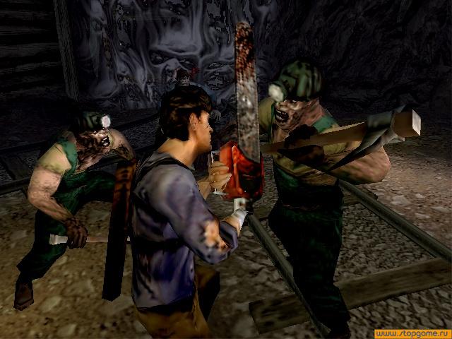Геймплей Evil Dead Regeneration — это чистый, незамутнённый катарсис через насилие. Вы будете рубить, взрывать и отстреливать конечности ордам зловонных «мёртвяков» (Deadites) с помощью своего арсенала, в котором, к счастью, бесконечные боеприпасы. Не нужно тратить время на поиск патронов или бензина для пилы — только чистое, бескомпромиссное веселье в стиле «руби-и-беги». Разработчики добавили даже систему комбо, чтобы ваши кровавые танцы смерти выглядели как можно эффектнее. А ещё у вас есть напарник — странный и немного помешанный Сэм, чьи способности помогут вам решать головоломки и открывать новые пути. Хотя, честно говоря, большинство головоломок решаются простым принципом: «Если не получается — бей сильнее!».