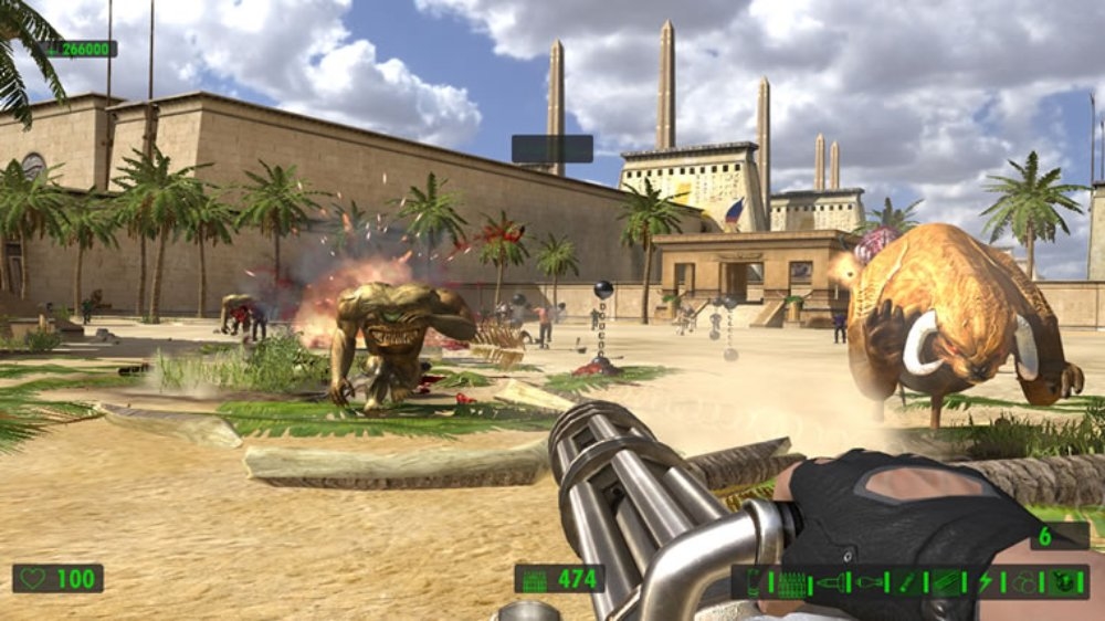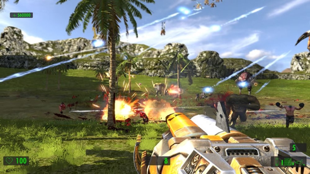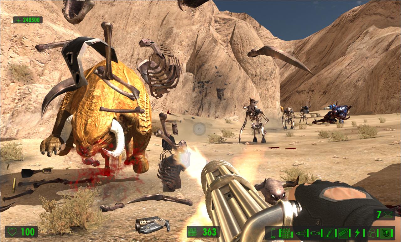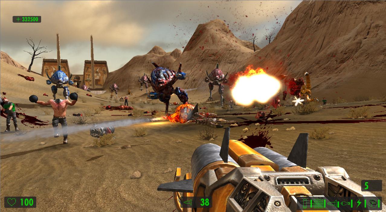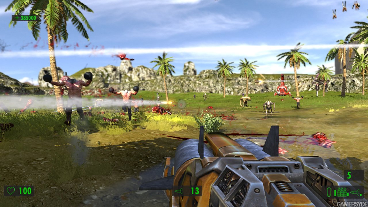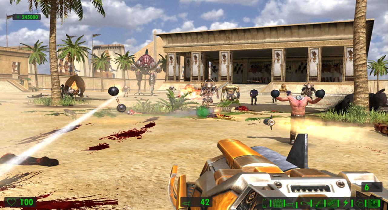 Поскольку упор делается на стрельбу, герой сможет воспользоваться целым рядом крутых пушек. Помимо стандартных ружей и автоматов в арсенале Сэма имеются: переносной авиационный пулемёт, эффектный лазерный бластер и стреляющая огромными ядрами пушка, убивающая с одного выстрела всё живое.
