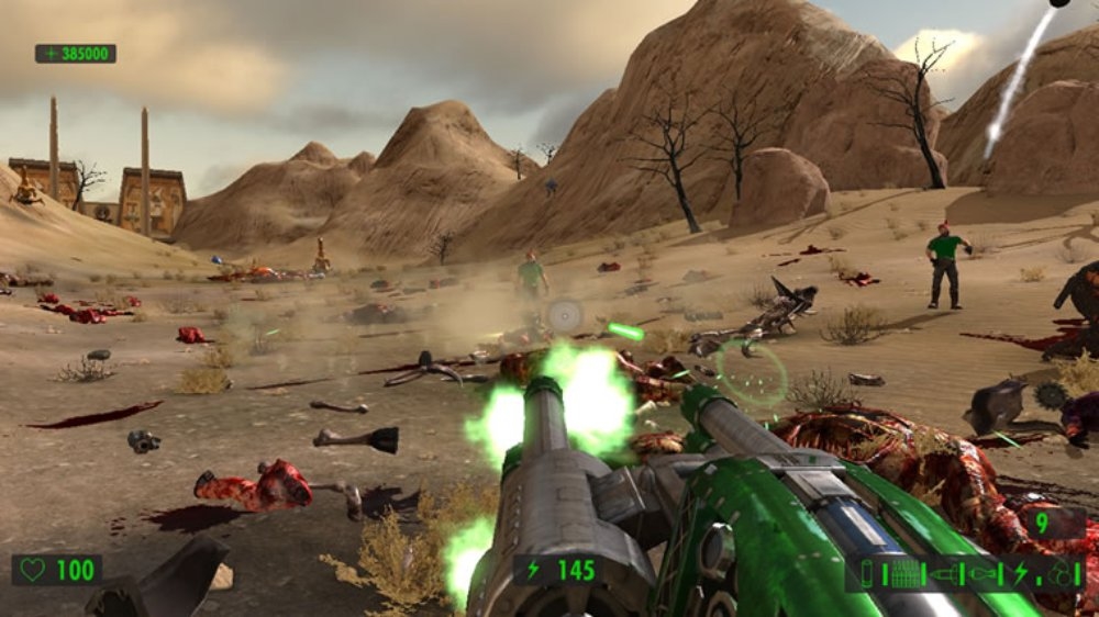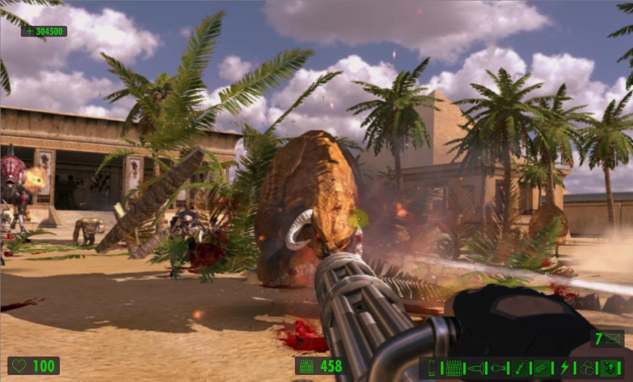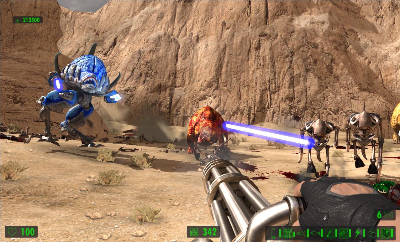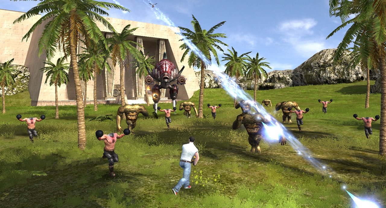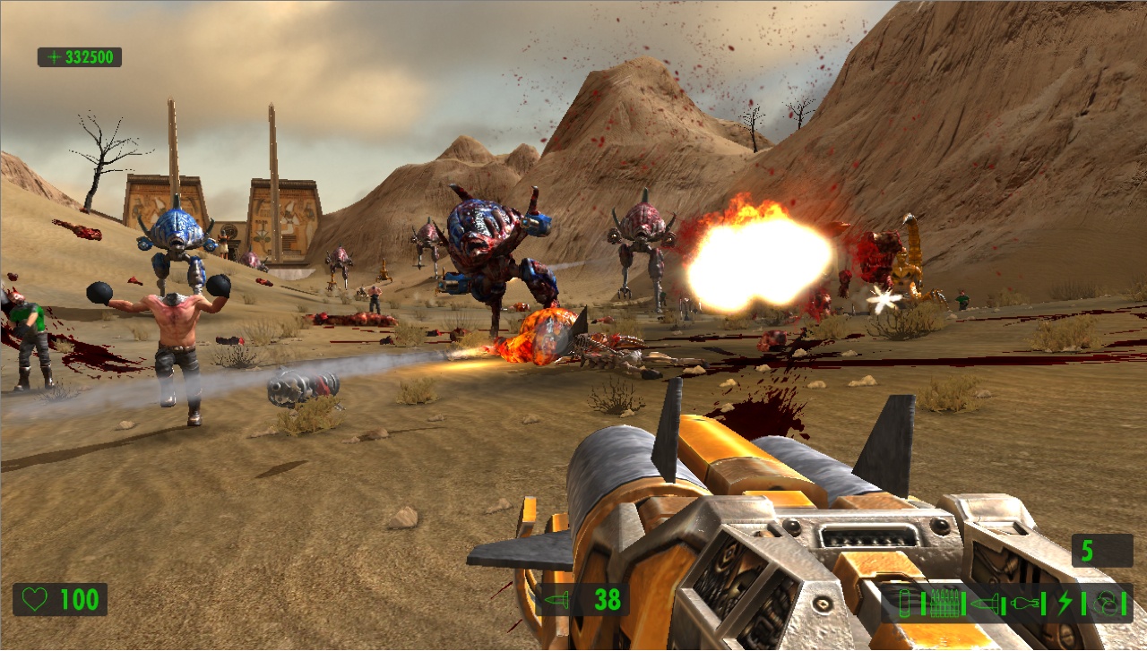 Поскольку упор делается на стрельбу, герой сможет воспользоваться целым рядом крутых пушек. Помимо стандартных ружей и автоматов в арсенале Сэма имеются: переносной авиационный пулемёт, эффектный лазерный бластер и стреляющая огромными ядрами пушка, убивающая с одного выстрела всё живое.