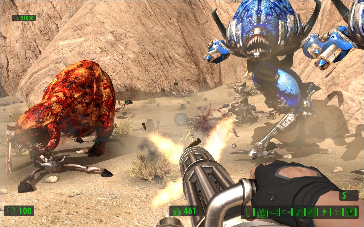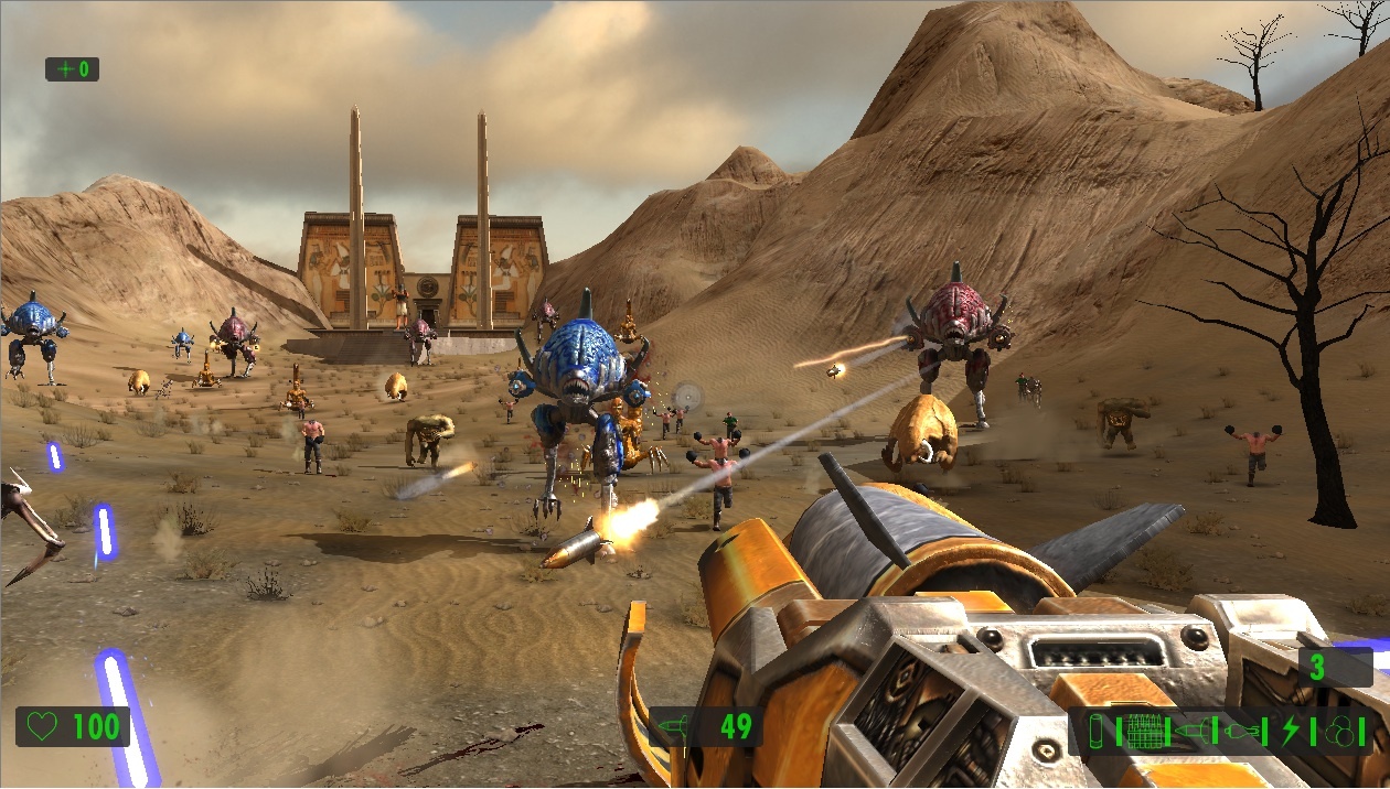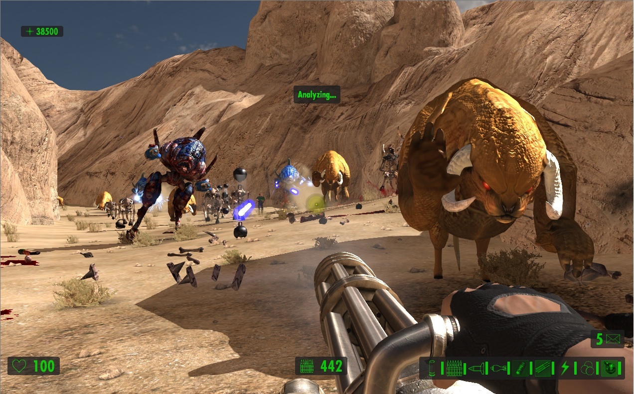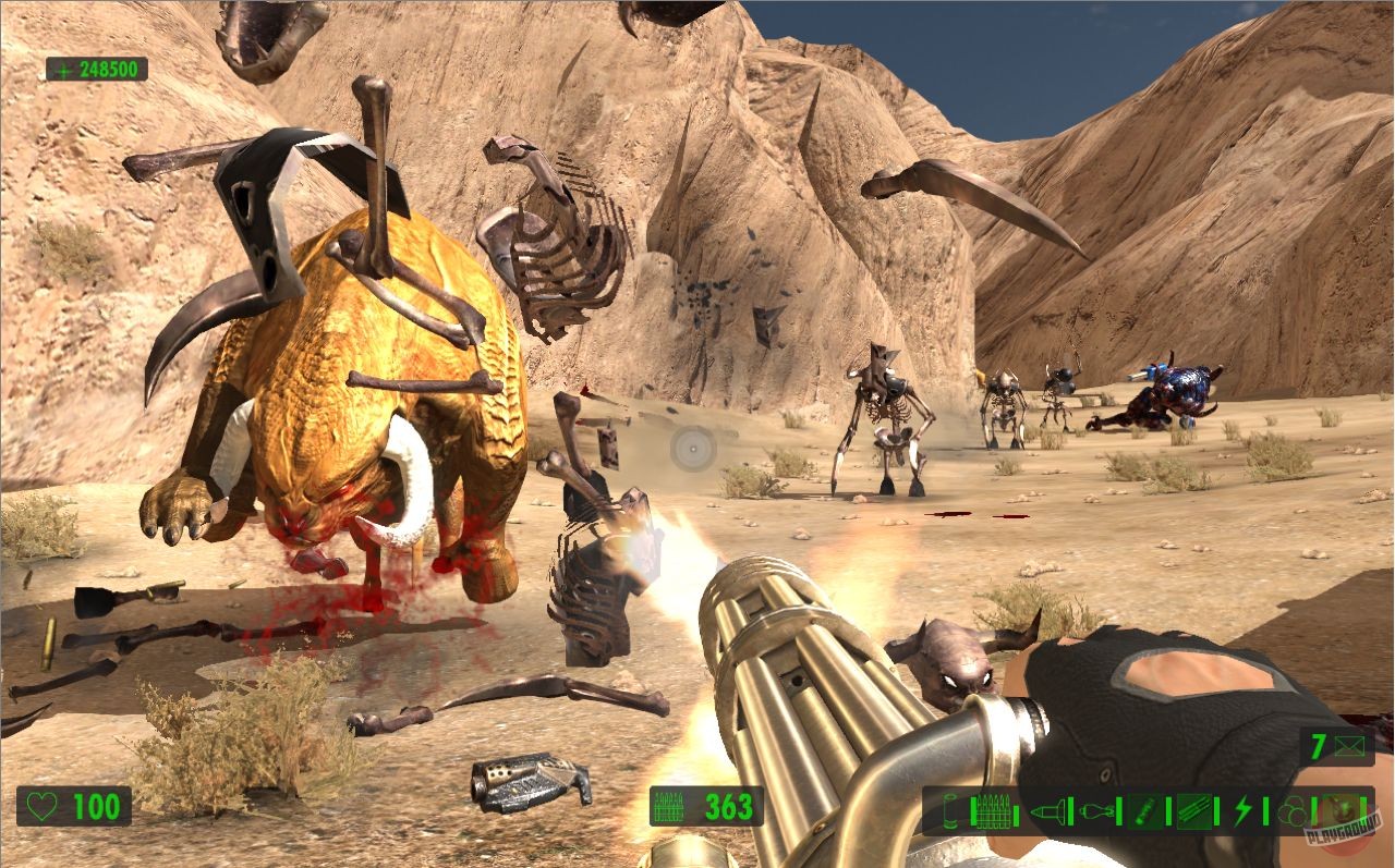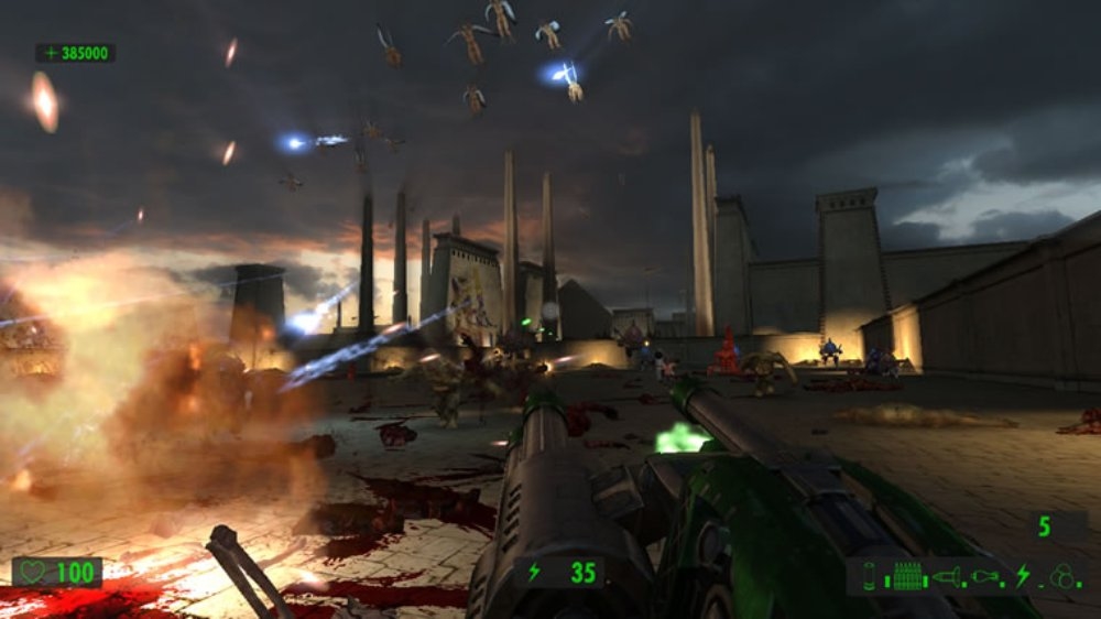 Поскольку упор делается на стрельбу, герой сможет воспользоваться целым рядом крутых пушек. Помимо стандартных ружей и автоматов в арсенале Сэма имеются: переносной авиационный пулемёт, эффектный лазерный бластер и стреляющая огромными ядрами пушка, убивающая с одного выстрела всё живое.