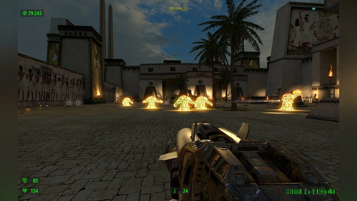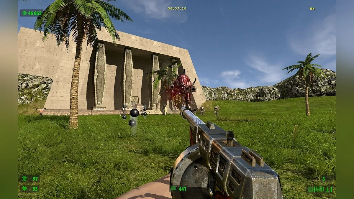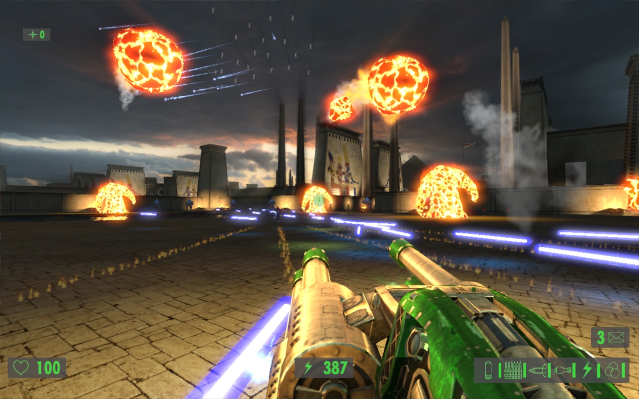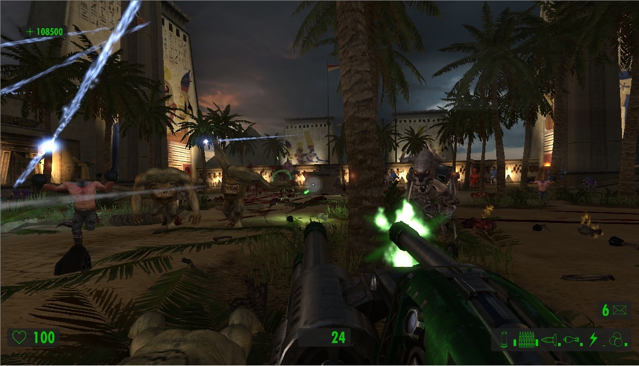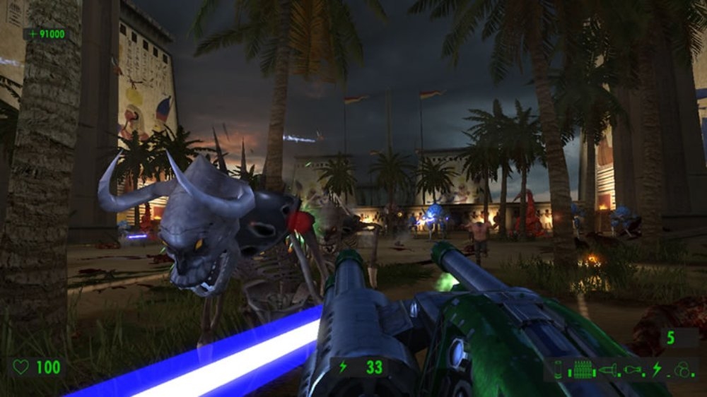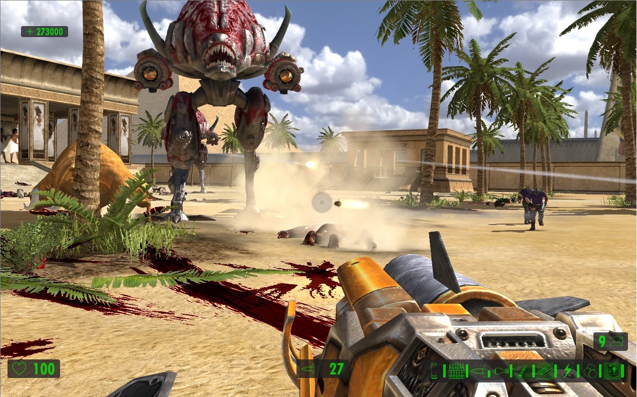 Поскольку упор делается на стрельбу, герой сможет воспользоваться целым рядом крутых пушек. Помимо стандартных ружей и автоматов в арсенале Сэма имеются: переносной авиационный пулемёт, эффектный лазерный бластер и стреляющая огромными ядрами пушка, убивающая с одного выстрела всё живое.