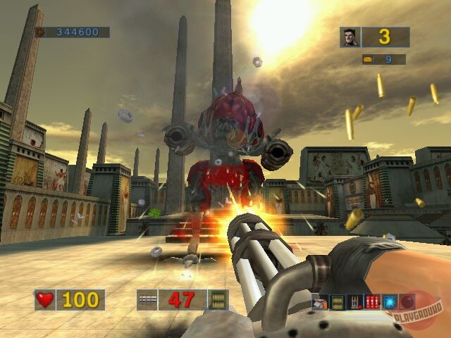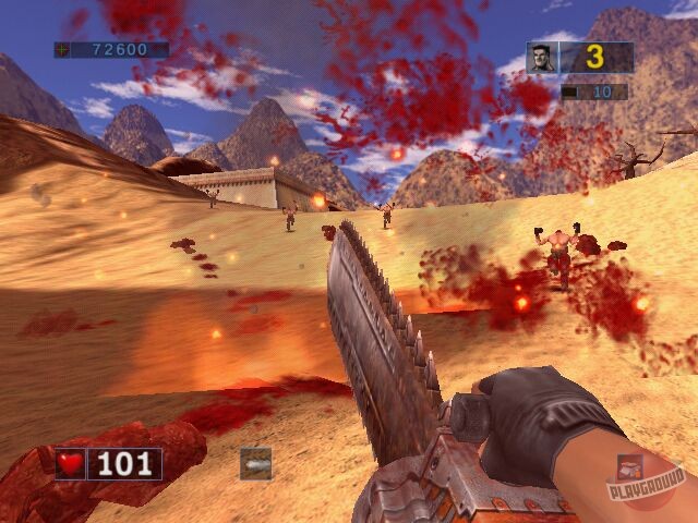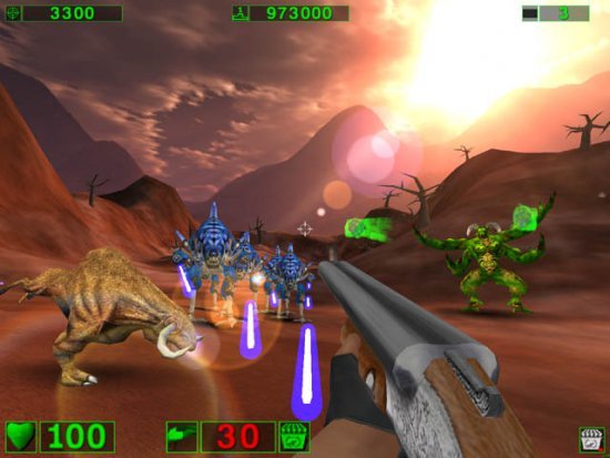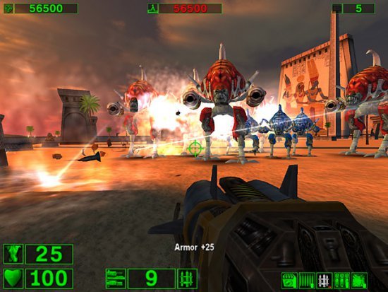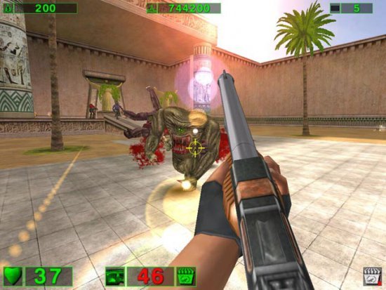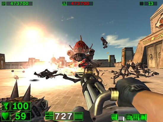 Культоый шутер, строго соблюдающий традиции поколения Doom и ничуть не стесняющийся своей абсурдности. Межгалактический мститель Сэм высаживается на заселенную неопрятными тварями планету и начинает много бегать и стрелять. Впрочем, на самом деле сюжет здесь отсутствует за ненадобностью: крутой Сэм с миниганом разносит в пыль килотонны монстров в удивительно красивых для 2001 года декорациях, а все остальное - неважно.
