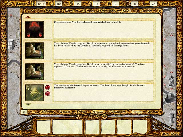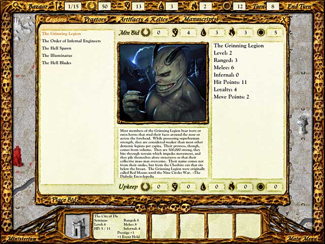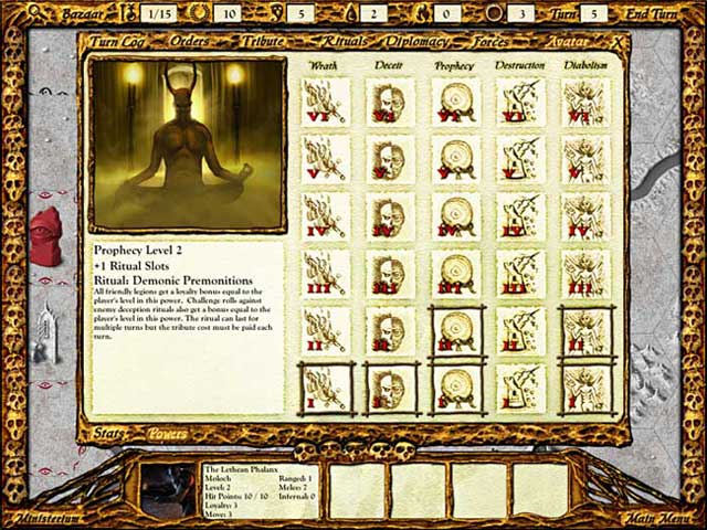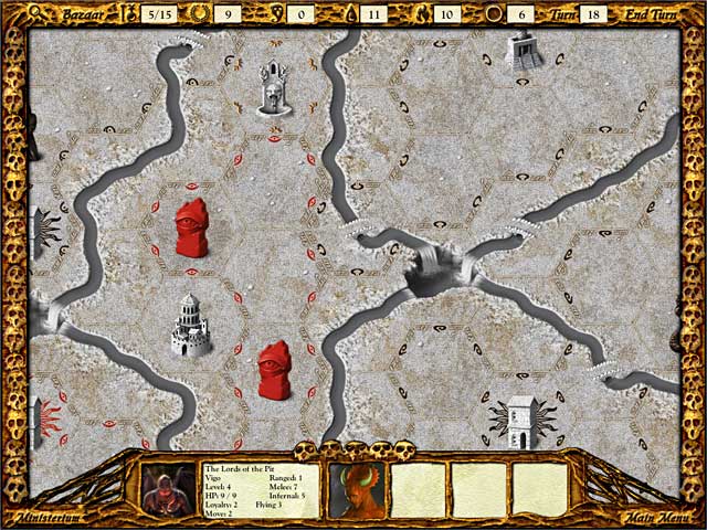 Solium Infernum — это не просто 4X-стратегия (исследуй, расширяйся, эксплуатируй, уничтожай), это гениальный симулятор офисной (вернее, адской) политики. Вы выбираете одного из могущественных Архидьяволов, каждый со своими уникальными способностями и легионами демонов, и начинаете свою карьеру в собственной цитадели. Ваша цель — набрать достаточно Прославления, чтобы занять пустующий трон Повелителя Преисподней. Но вот загвоздка: ваши соседи-дьяволы думают точно так же! Вместо того чтобы лезть друг на друга с топорами, вы будете торговать редкими реликвиями, отправлять оскорбительные дипломатические депеши, вербовать шпионов, вызывать своих врагов на поединки чести и, конечно же, плести паутину обмана, которая рано или поздно захлопнется на ком-то из вас. Геймплей напоминает шахматы, если бы фигуры были одержимы местью, а доска — из чистого угольного сердца Ада.