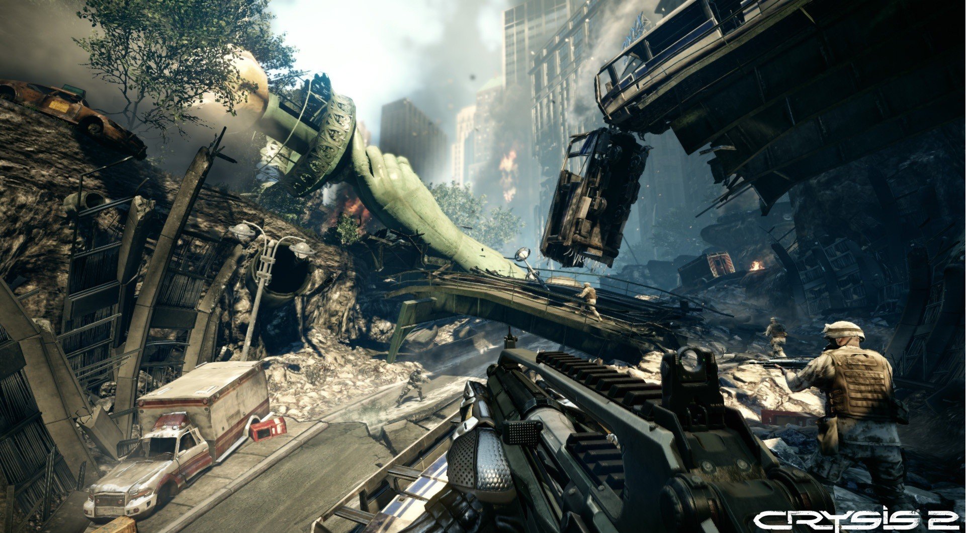 Добро пожаловать в Crysis 2 — тот самый шутер от первого лица, где вы не просто спасаете Нью-Йорк от инопланетного вторжения, а делаете это в самом стильном и технологичном костюме на свете! Забудьте про супергероев из комиксов: ваш нанокостюм версии 2.0 — это и броня, и оружие, и ваш личный гаджет для решения любых проблем, будь то раздавливание пришельцев или прыжки с небоскрёбов. Если вы думали, что "Трансформеры" — это круто, подождите, пока вы сами станете ходячим танком с режимом невидимости!