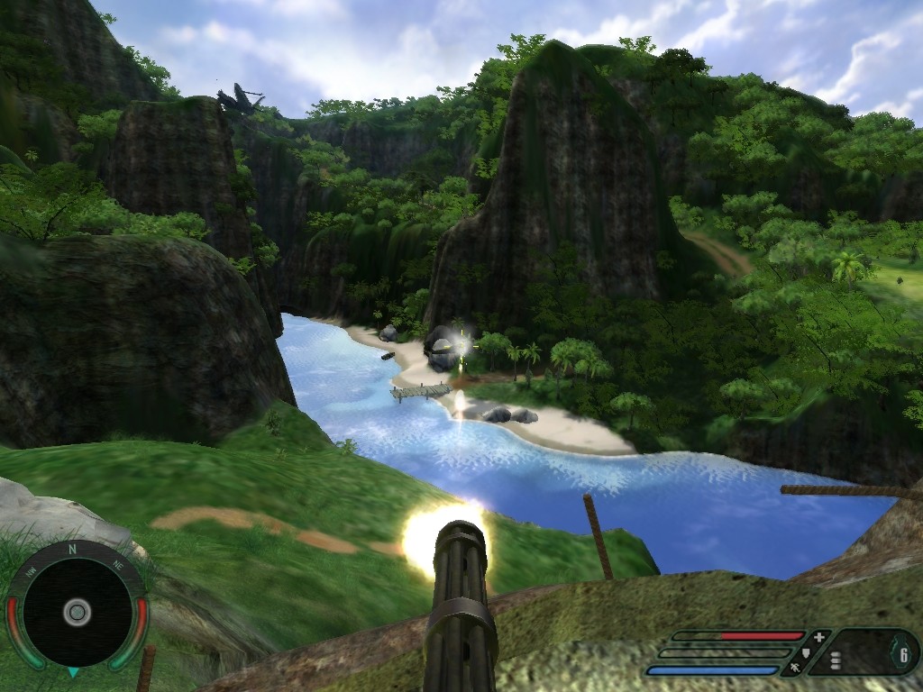 Геймплей Far Cry — это волшебный микс из экшен-стрельбы, тактической перестрелки и постоянного чувства «ой, всё». Игра щедро одаривает вас огромными, живописными (но крайне враждебными) локациями на просторах Тихого океана. Здесь нет строгих коридоров: вы свободны исследовать острова на своих двоих, на внедорожнике, квадроцикле или даже на лодке, что было настоящим прорывом для своего времени. Вам предстоит использовать не только арсенал из десятков видов оружия — от верного пистолета до ракетниц, — но и окружение. Хотите устроить засаду в густых джунглях? Пожалуйста. Предпочитаете устроить хаос с высоты скалы? Ваше право. А еще тут есть турели, которые заставят вас вспомнить все свои молитвы. Главное — не забывайте про бинокль! Он не просто для любования пейзажами, а ключевой инструмент для разведки и вызова дальнобойной артиллерийской поддержки. Это не просто шутер, это школа выживания для самых стойких.