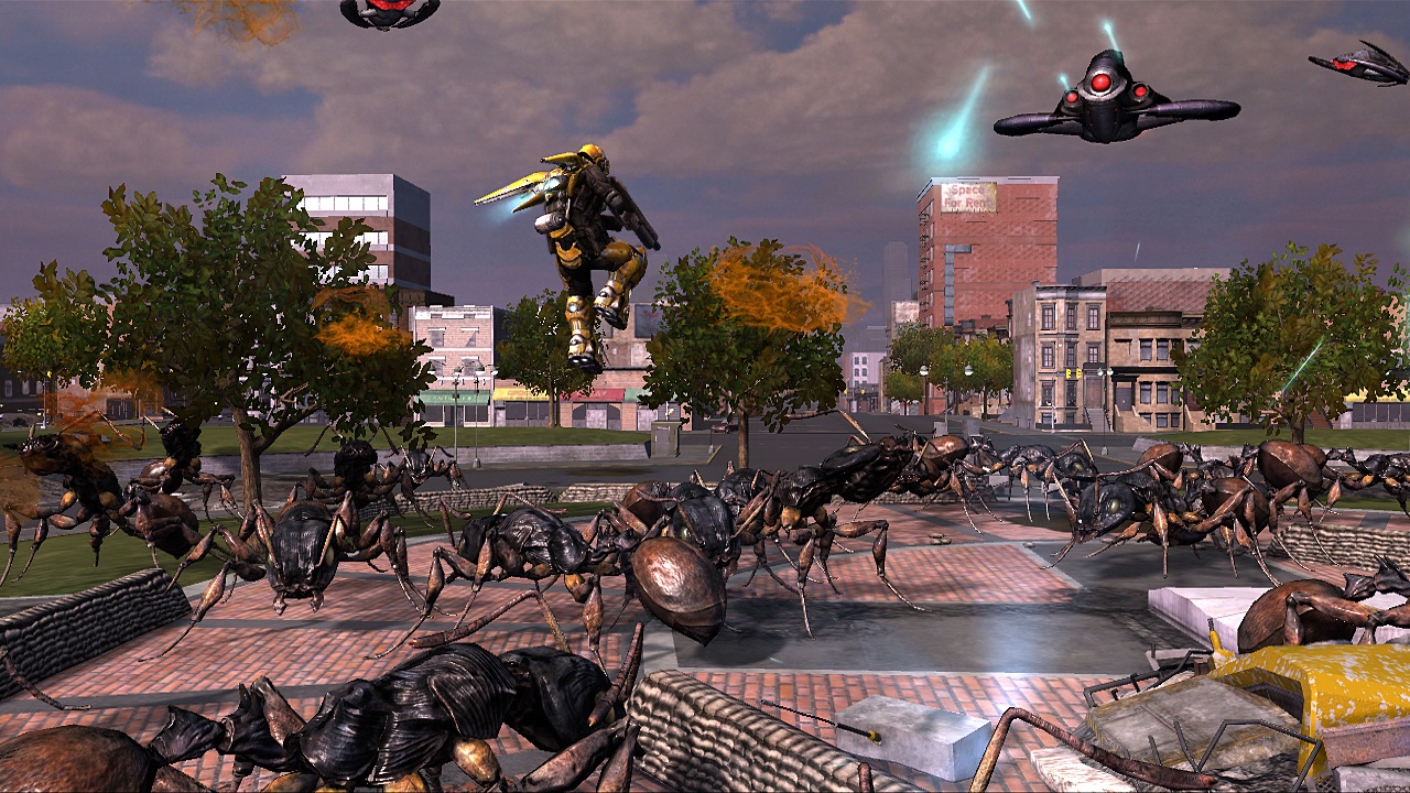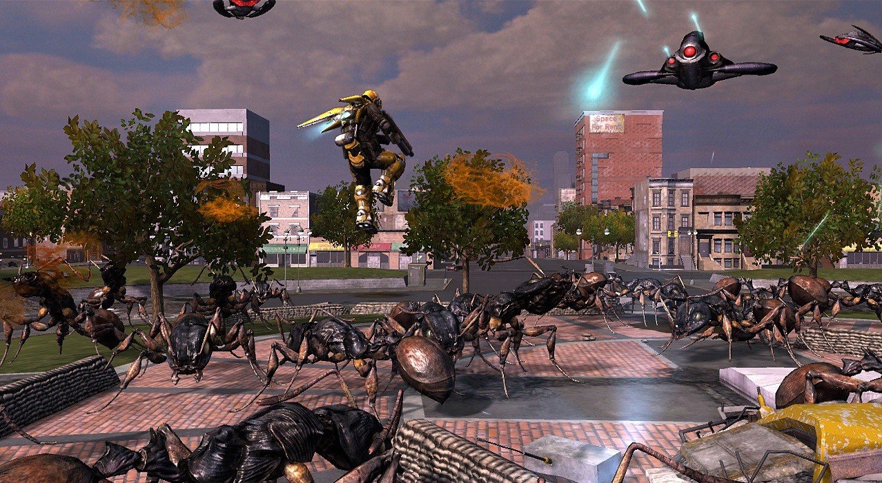 Особенности игры делают ее настоящим подарком для фанатов хаотичного веселья. Во-первых, огромный арсенал оружия, которое можно подбирать прямо с земли — каждый новый ствол мощнее и безумнее предыдущего. Во-вторых, полное разрушение окружения: здания рушатся, машины взрываются, создавая идеальную обстановку для эпичных сцен. И, конечно же, кооперативный режим — играть в одиночку весело, но вчетвером с друзьями, обсуждая, чья ракета убила этого гигантского скорпиона, — это уже легенда. Да, графика может показаться немного устаревшей, а ИИ союзников иногда ведет себя так, будто они тоже заражены инопланетным разумом, но разве это важно, когда вы можете вызвать орбитальный удар на голову колонии муравьев?