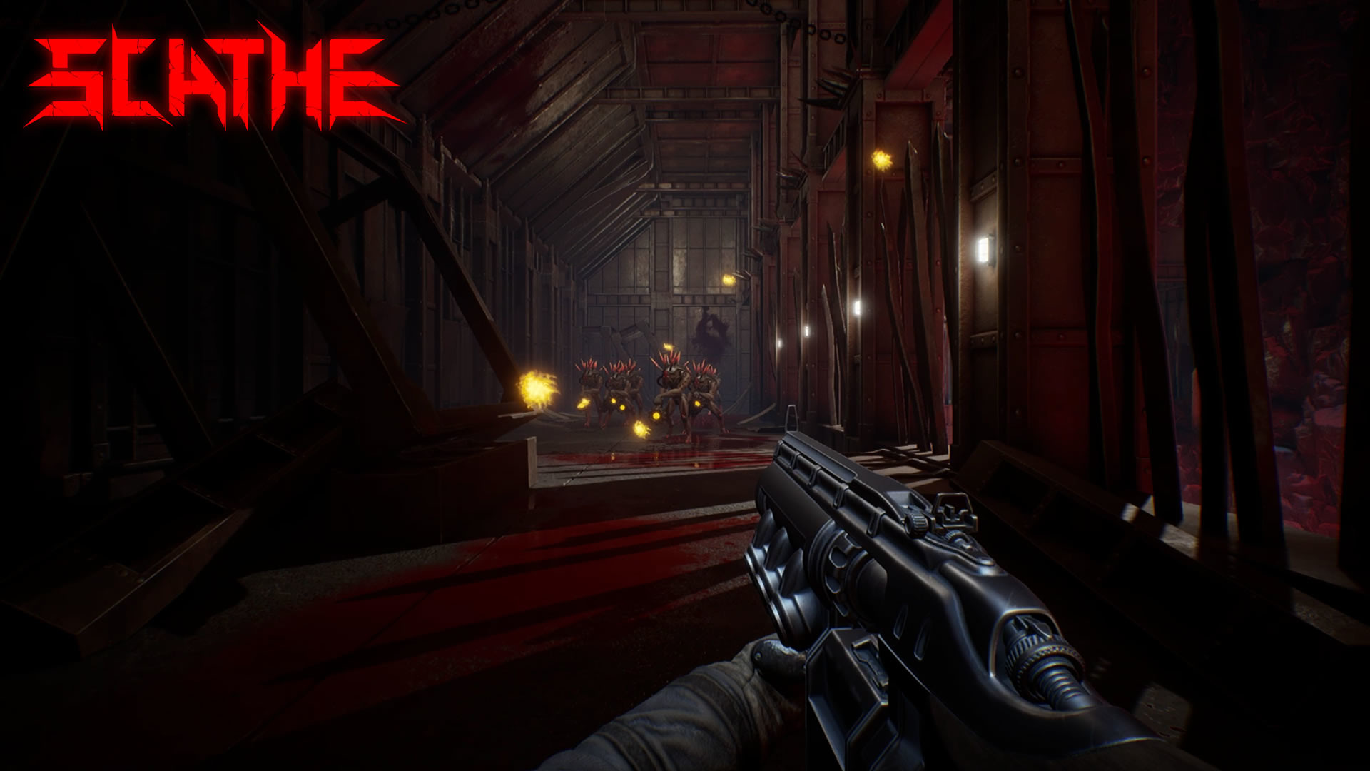 Scathe - это вдохновленная классическими шутерами от первого лица игра, в которой игроки отправляются в огромный демонический лабиринт, населенный чудовищными монстрами. Цель проста - уничтожить как можно больше противников с помощью разнообразного арсенала оружия, а также собирать Адские камни, без которых выбраться из лабиринта невозможно. На пути у протагониста встают как обычные демоны, так и ужасающие боссы, каждый из которых обладает особыми навыками.