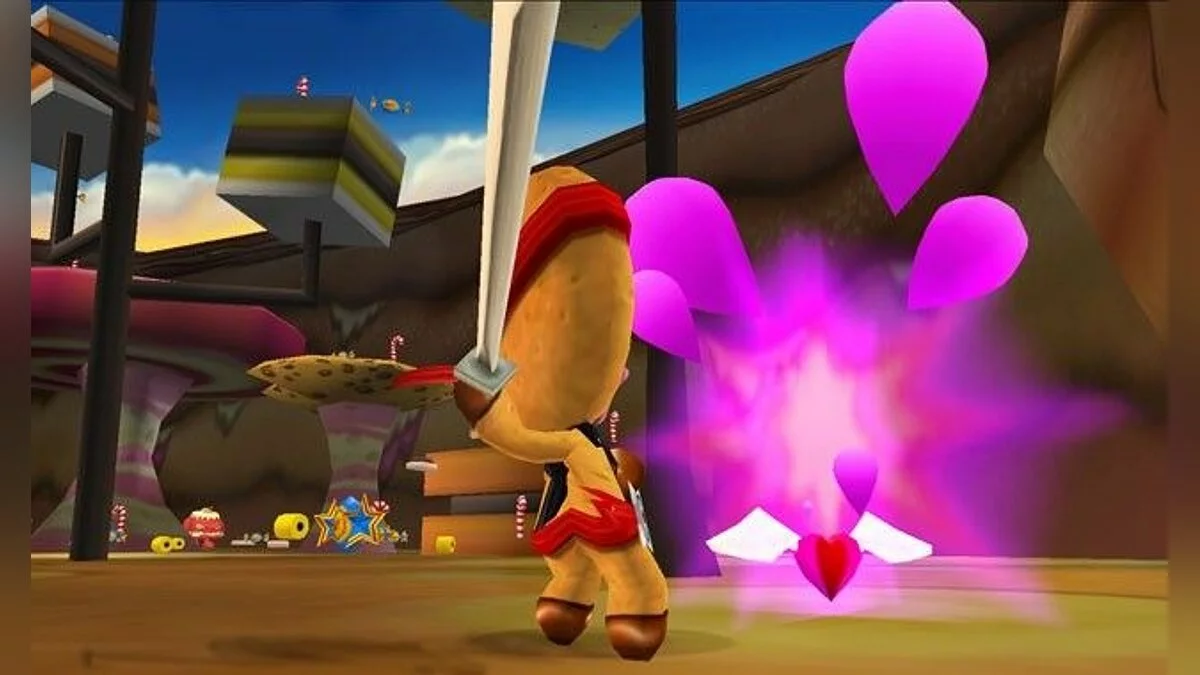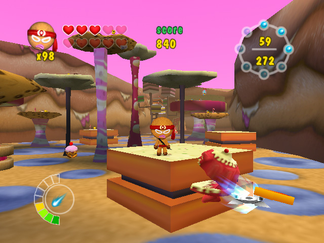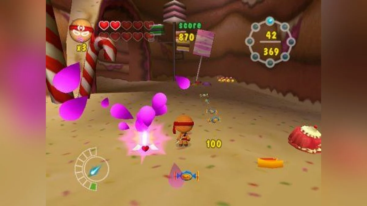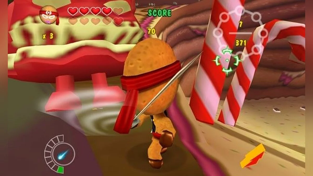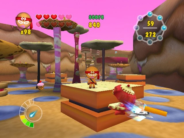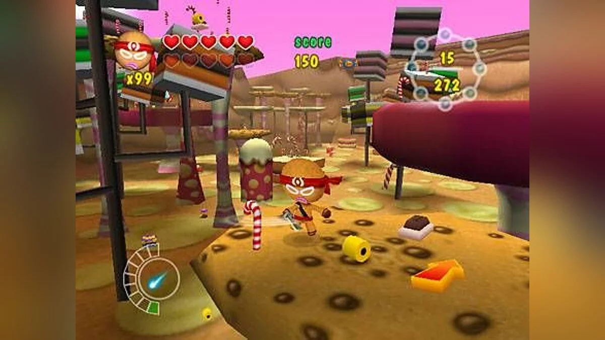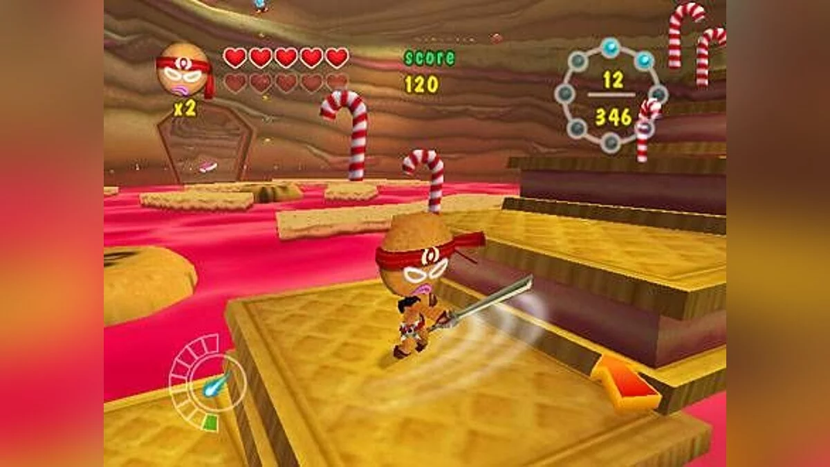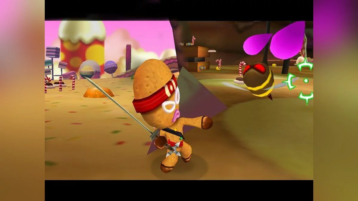 Ninjabread Man - детский платформер о пряничном (в русском варианте почему-то назван "печенюшка") человечке-ниндзя, которой бродит по уровням и с помощью пары катан и сюрикенов уничтожает полчища кексов, желейных монстров и пчел, атакующих Конфетную страну.
