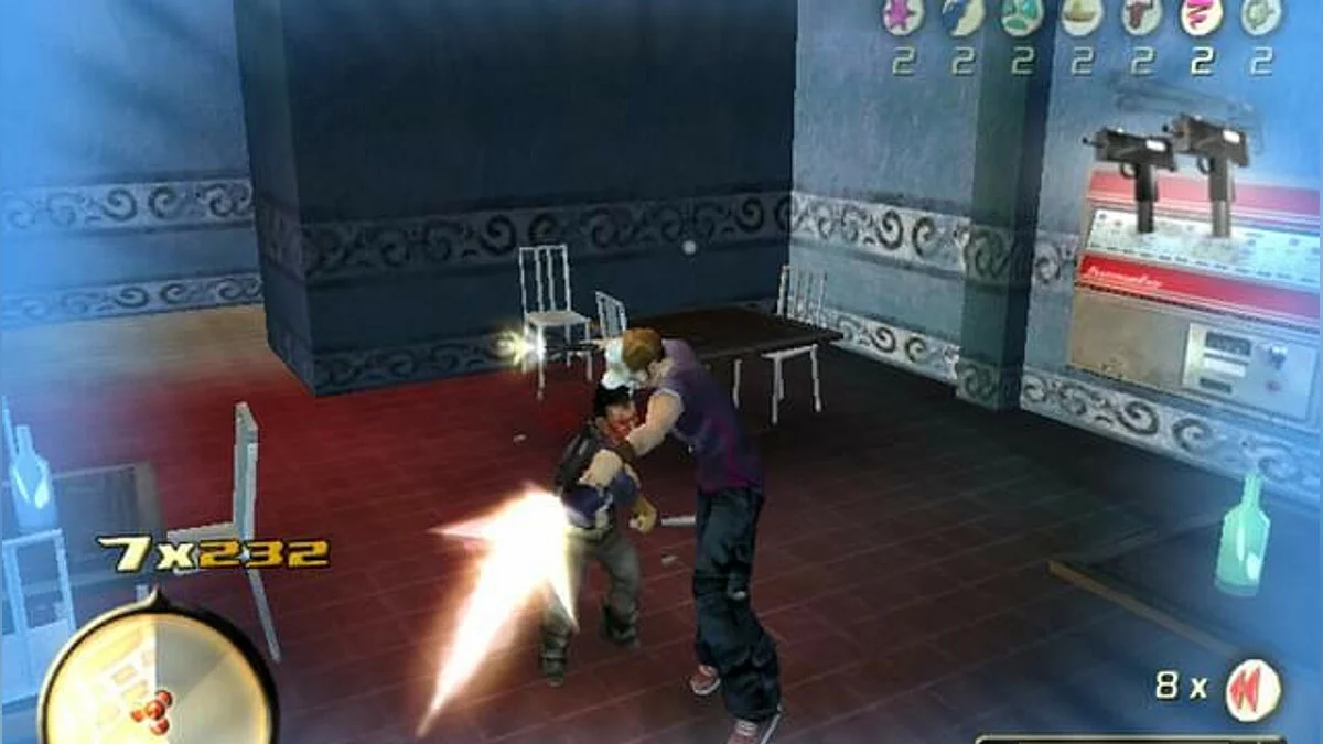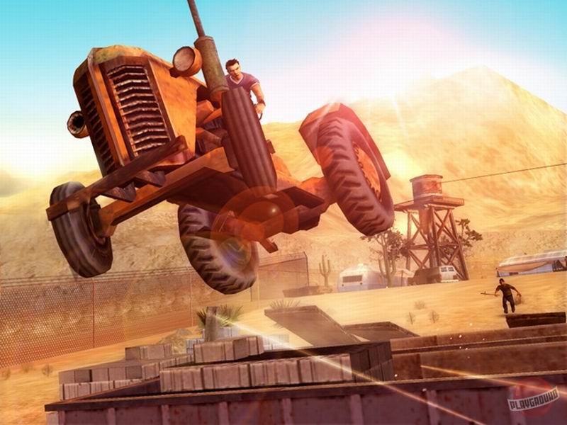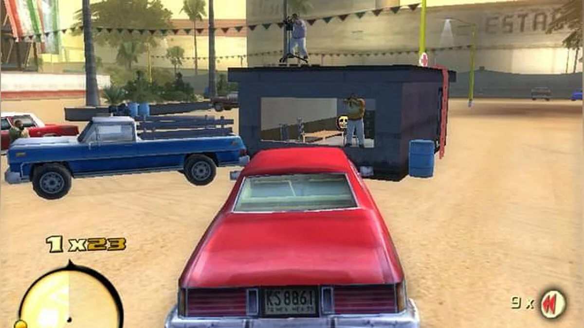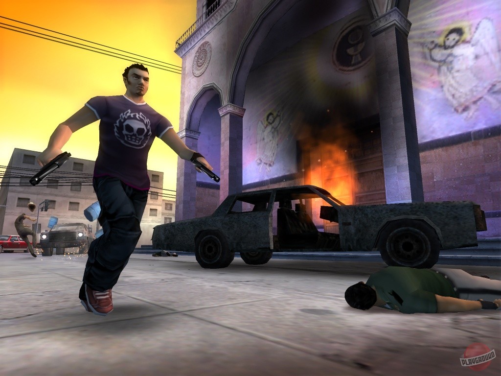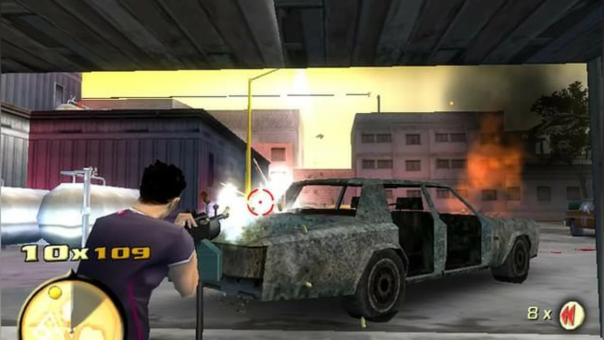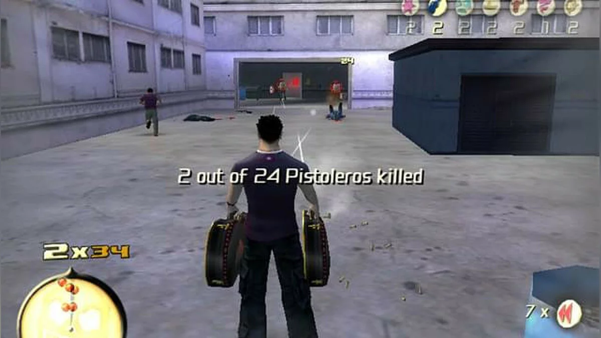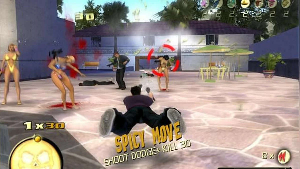 Геймплей Total Overdose — это чистый, незамутнённый экшен в открытом мире. Здесь нет места скуке: вас ждут десятки основных и побочных миссий, каждая из которых — маленький фильм ужасов для злодеев. Хотите устроить перестрелку в баре, как в «Смертельном поезде»? Пожалуйста! Нужно уничтожить вертолёт, используя только гранаты и остроумие? Легко! А если захочется просто покататься на джипе и поохотиться на кур (да-да, это реально!), то и это можно. Игра щедро наделяет вас уникальными способностями, такими как «Око Змеи» для замедления времени или «Прыжок Ящерицы» для эпичных прыжков прямо в гущу боя. Управление интуитивное, а сложность можно подстроить под себя, так что даже новичок в жанре action-adventure быстро станет местным Рэмбо.