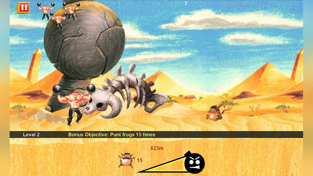 В игре мы выступаем в роли безголового камикадзе, которому лорд Ментал поручил убить Сэма. Для выполнения столь ответственной миссии нам придется бегать по двухмерному песку на фоне пирамид, преодолевать препятствия и уворачиваться от пущенных Сэмом ракет и прочей армейской продукции.