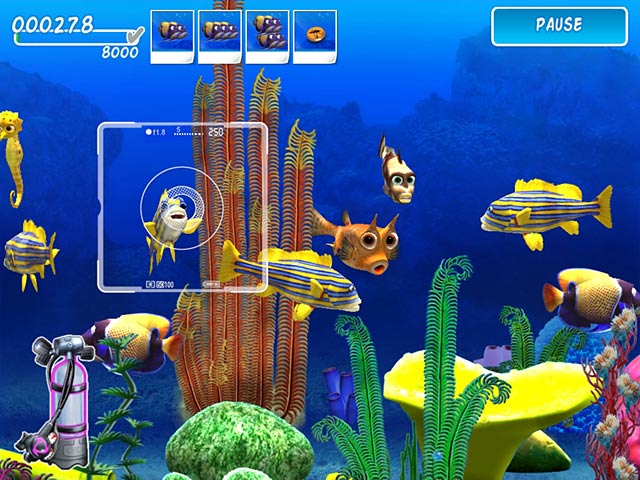 Tropical Dream: Underwater Odyssey — это увлекательный гибрид жанров: здесь вам и экшен-геймплей в стиле side-scrolling, и головоломка, и даже немного симулятора жизни. Ваша задача — исследовать 75 (!) уникальных подводных уровней, управляя Меган и её камерой. Каждое погружение — это новая мини-игра, где нужно быстро и точно фотографировать конкретных рыбок из списка, пока не закончился кислород. Представьте себе: вы плывёте, вокруг вас танцуют разноцветные рыбы-ангелы, величественно проплывают скаты, а где-то вдалеке мелькает хвост дельфина. Но внимание! Нужно не просто щёлкать направо и налево, как турист на экскурсии, а целенаправленно искать заданных обитателей, ведь за точность и скорость вас ждут бонусы. Это как "Найди Валли" под водой, только вместо полосатой шапки — хитрая рыба-клоун или зубастая барракуда.