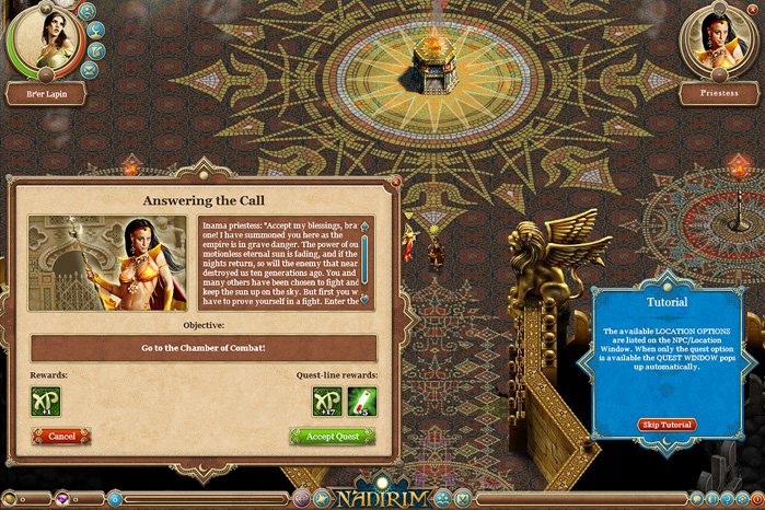 В мире Nadirim вас ждут не только захватывающие PvP-сражения, но и множество PvE-квестов — как для одиночек, так и для целых отрядов. Исследуйте экзотические локации, наполненные духом Тысячи и одной ночи, выполняйте задания от загадочных NPC и сражайтесь с коварными боссами. Отзывы игроков часто отмечают атмосферную музыку и уникальный антураж, который выгодно выделяет эту браузерную RPG среди других. Вас ждут приключения, полные интриг, сокровищ и, конечно же, щедрой доли восточного колорита. Так что наденьте свой лучший тюрбан, проверьте оружие и готовьтесь к тому, чтобы стать легендой пустыни!