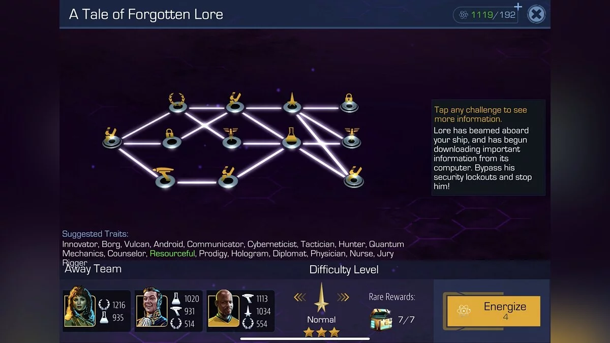 В Star Trek Timelines вы не просто наблюдаете за приключениями, а сами управляете своей версией Звёздного флота. Основной геймплей строится на сборе и прокачке уникальных персонажей — более 400 офицеров ждут своего часа, чтобы пополнить ваши ряды. Каждый из них обладает своими навыками и характеристиками, которые критически важны для успешного прохождения миссий. Вы будете отправлять свои отряды на планеты для выполнения тактических заданий, где исход зависит от правильного подбора команды, а в космосе — участвовать в масштабных сражениях со своим звездолётом. И да, это та самая игра, где можно случайно отправить Джанeway чинить репликатор на станции, пока Ворф готовится к бою с клингонами. Управление может показаться немного запутанным новичкам (как и сама концепция нарушенных временных линий!), но после пары миссий вы освоитесь и начнёте чувствовать себя настоящим адмиралом.