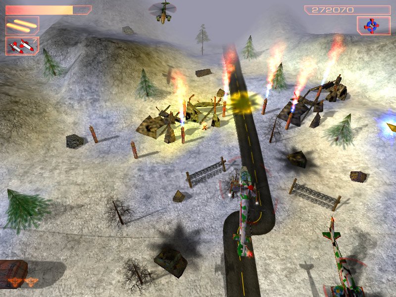 В AirStrike 2: Gulf Thunder всё серьезно, но без пафоса. Ваша задача — пройти 22 напряженных миссии, уничтожая всё, что движется, стреляет или просто стоит не там. Управляя своим летающим «танком», вы будете расчищать путь через вражеские базы, колонны техники и даже боссов, которые явно смотрели слишком много фильмов про Джеймса Бонда. Геймплей прост, как автомат Калашникова, но от этого не менее захватывающий: летите вверх по экрану, поливайте всё вокруг огнем из пулеметов, запускайте ракеты и собирайте бонусы для апгрейда своего железного коня. Это идеальный способ разгрузить мозг после тяжелого дня — ведь здесь не нужно думать, нужно просто стрелять и получать удовольствие!