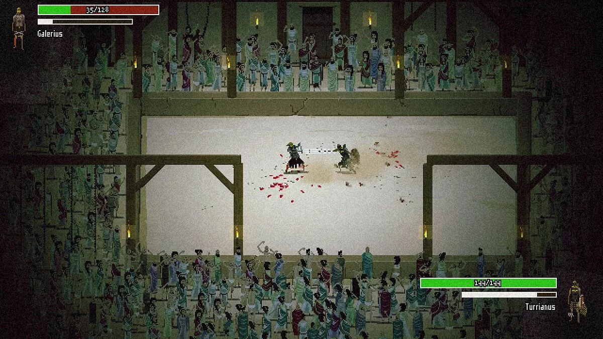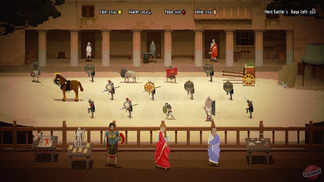 Ваша задача в Domina — прокачивать своих гладиаторов, управлять ресурсами (еда, вода, вино и самое ценное — время!) и принимать судьбоносные решения. Отправить бойца на смертельный поединок за славу и деньги или дать ему отдохнуть, чтобы не превратить свою школу в кладбище? Купить новое снаряжение у кузнеца или вложить средства в улучшение тренировочного зала? Каждый выбор имеет последствия, и ваши подопечные могут как прославить ваше имя на весь Рим, так и отправиться к праотцам раньше времени. Игра щедро снабжена отсылками к римской истории и поп-культуре, создавая атмосферу, где серьёзность античных боёв удачно разбавляется чёрным юмором и забавными диалогами. Вы точно не перепутаете её ни с одной другой игрой про гладиаторов благодаря уникальному стилю и глубокой системе управления.