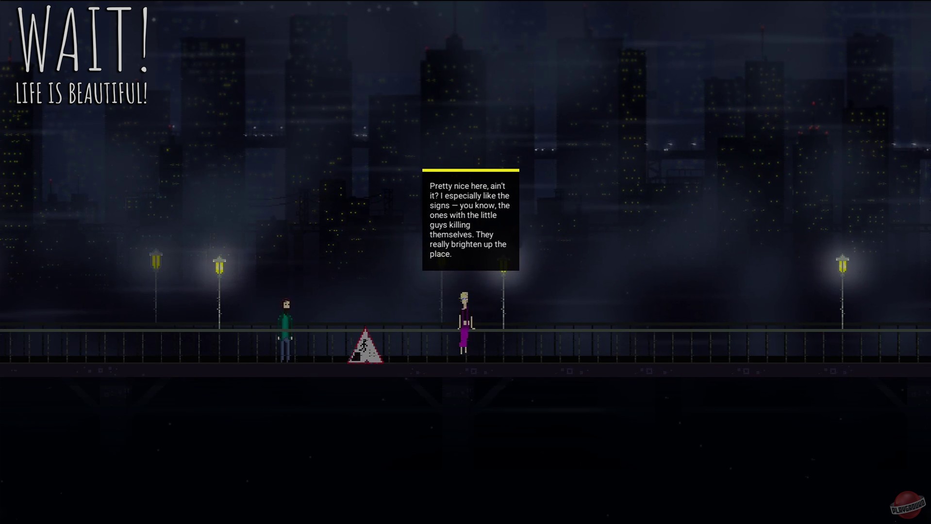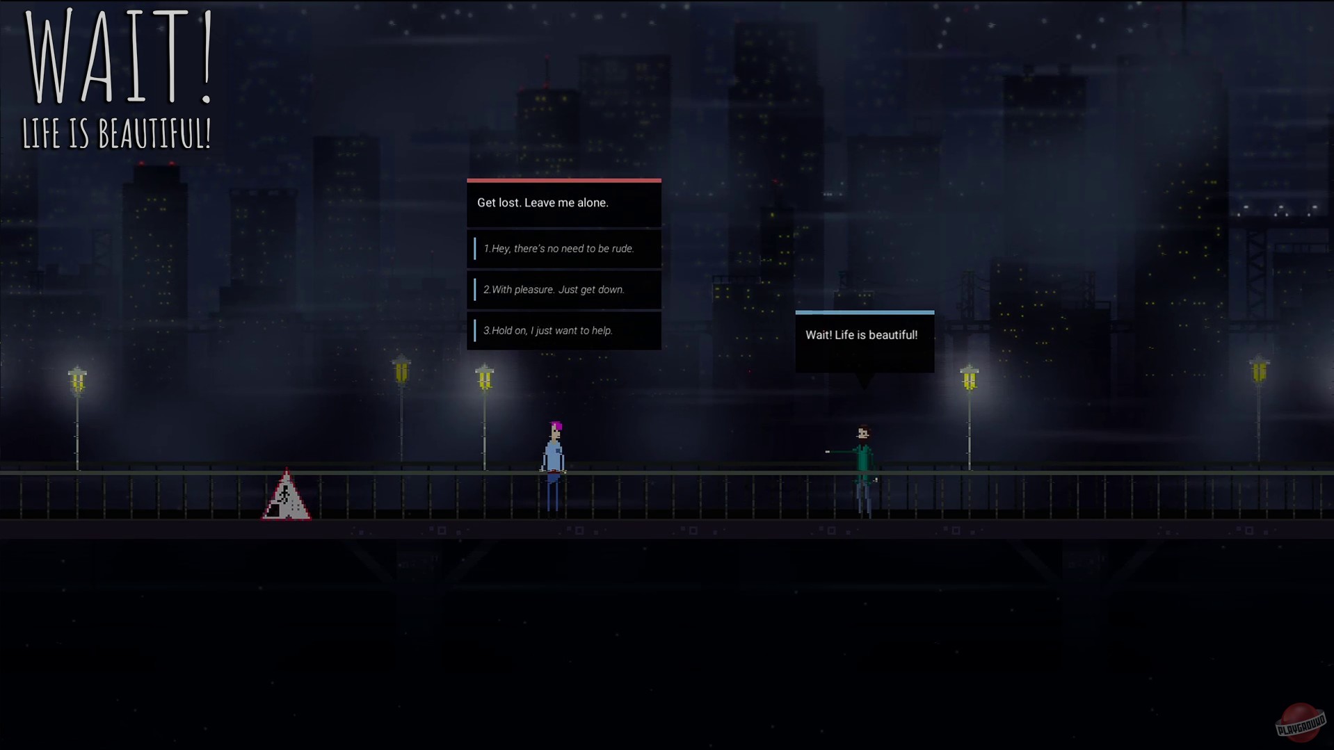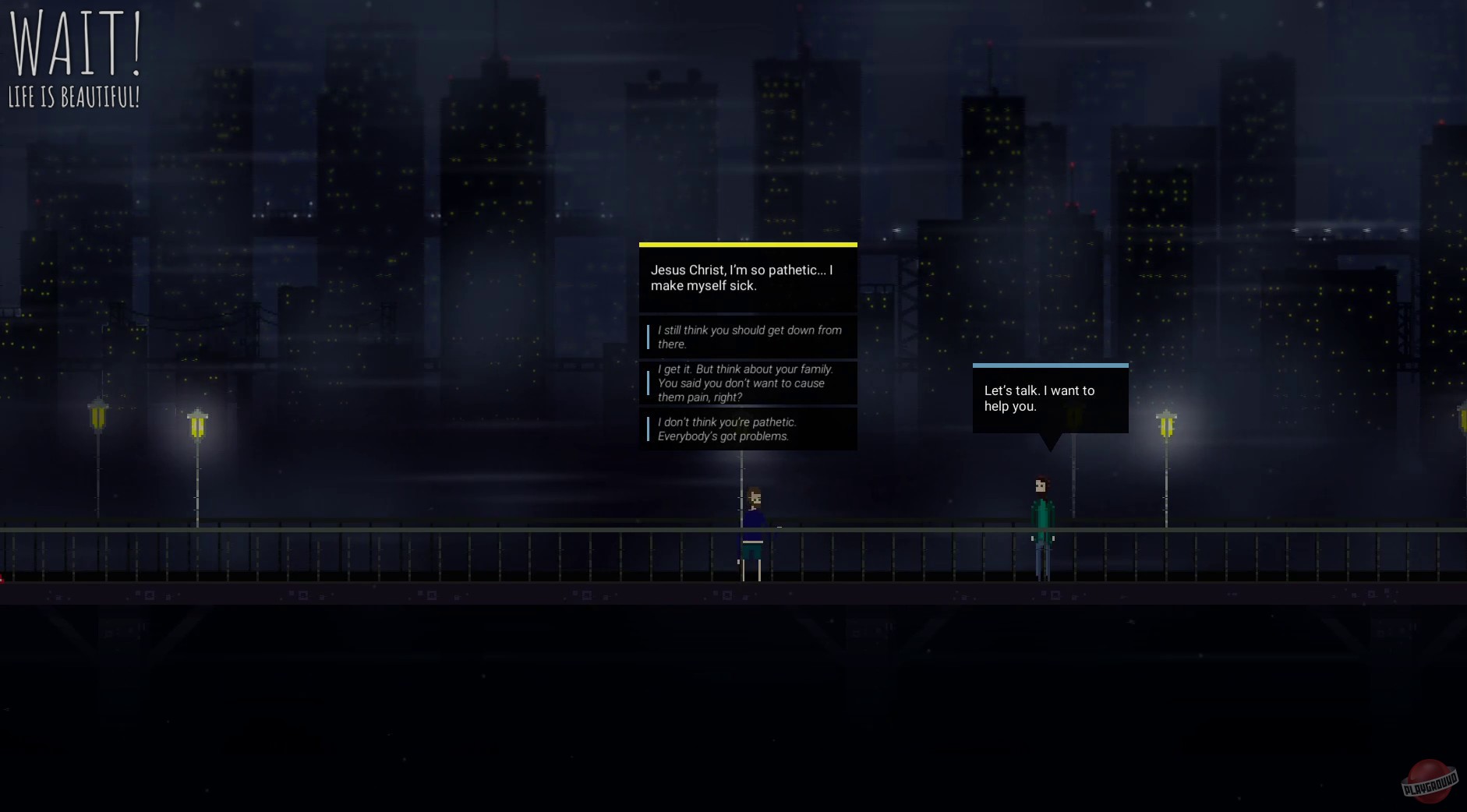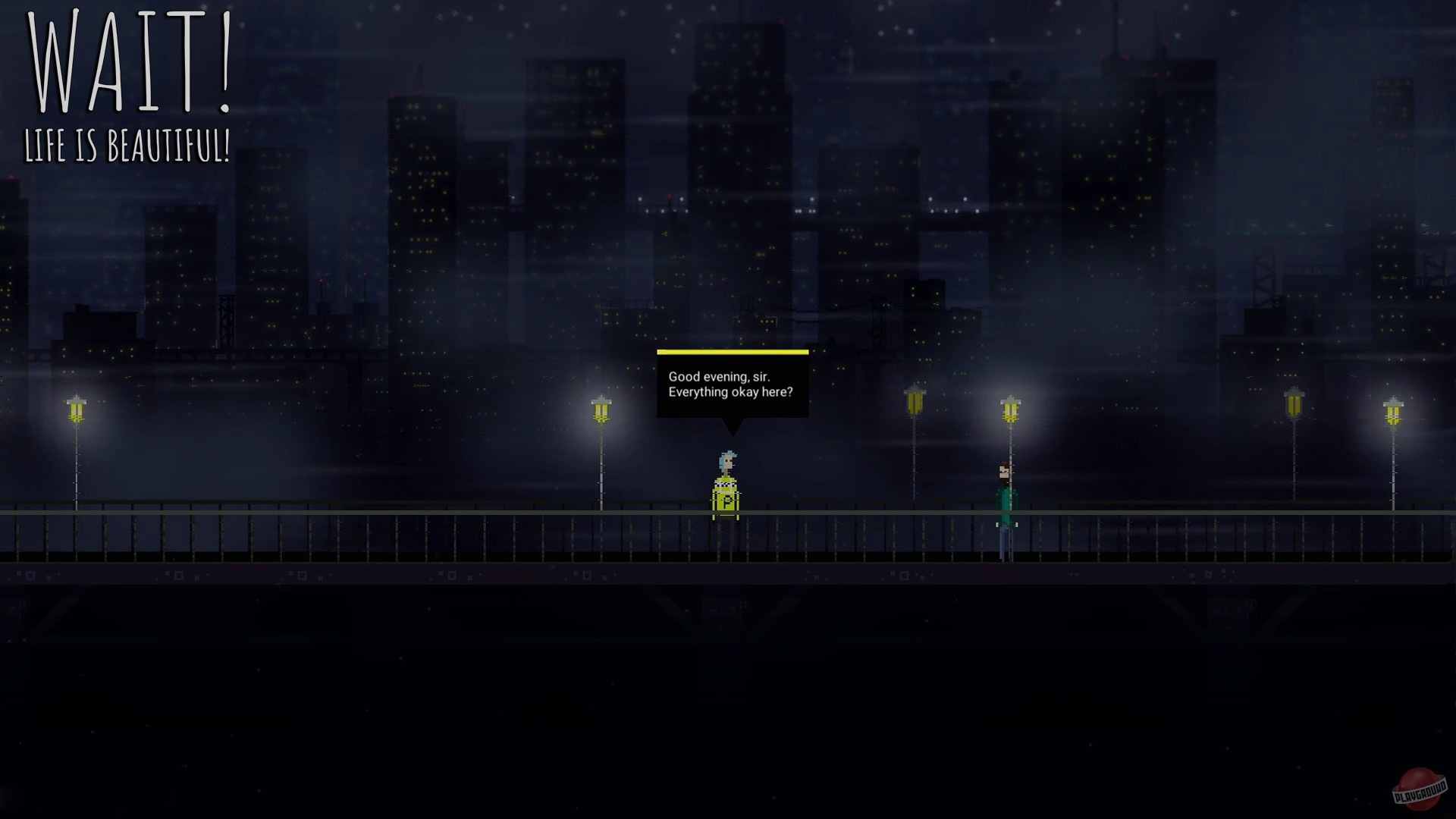 Процесс игры в Wait! Life is beautiful! схож с просмотром щекочущего нервы фильма, когда зритель погружается в тревожное душевное состояние главного героя. В центре сюжета — молодой парень, обычный клерк, “из народа”, он совсем не герой и уж точно не волшебник.