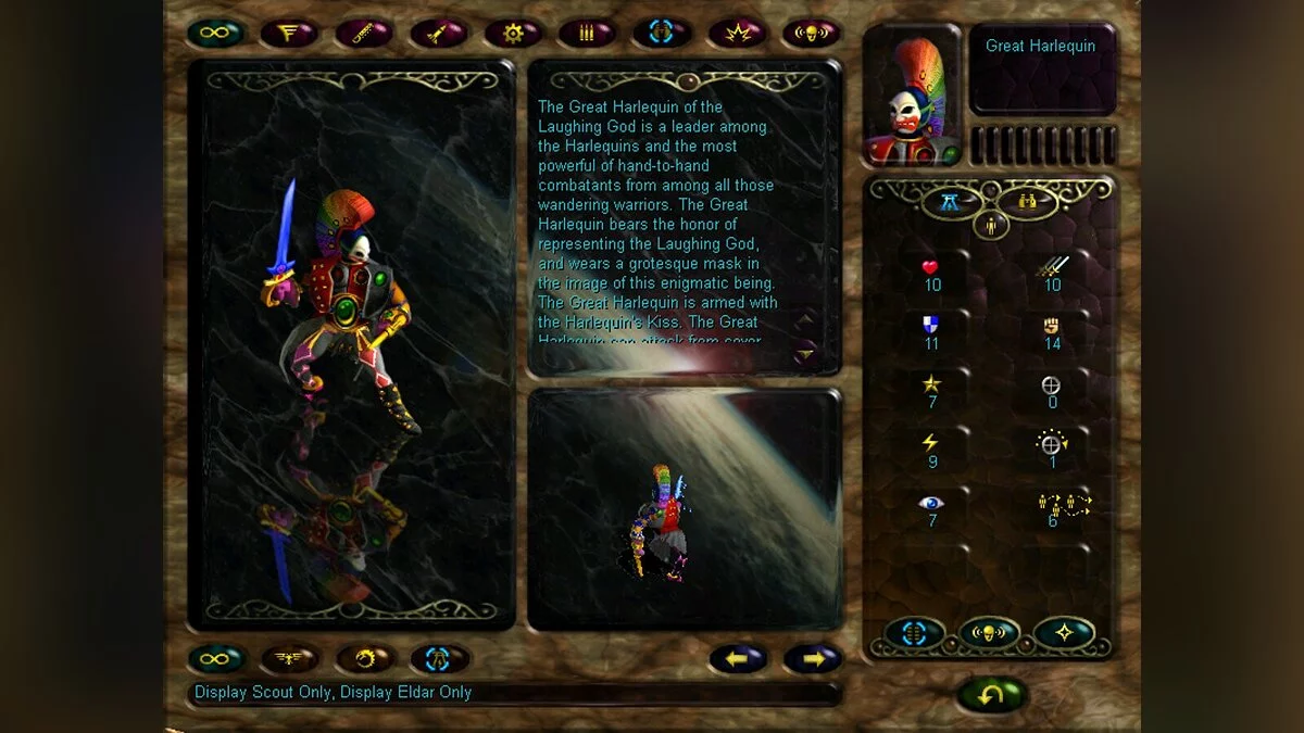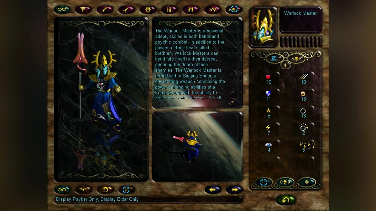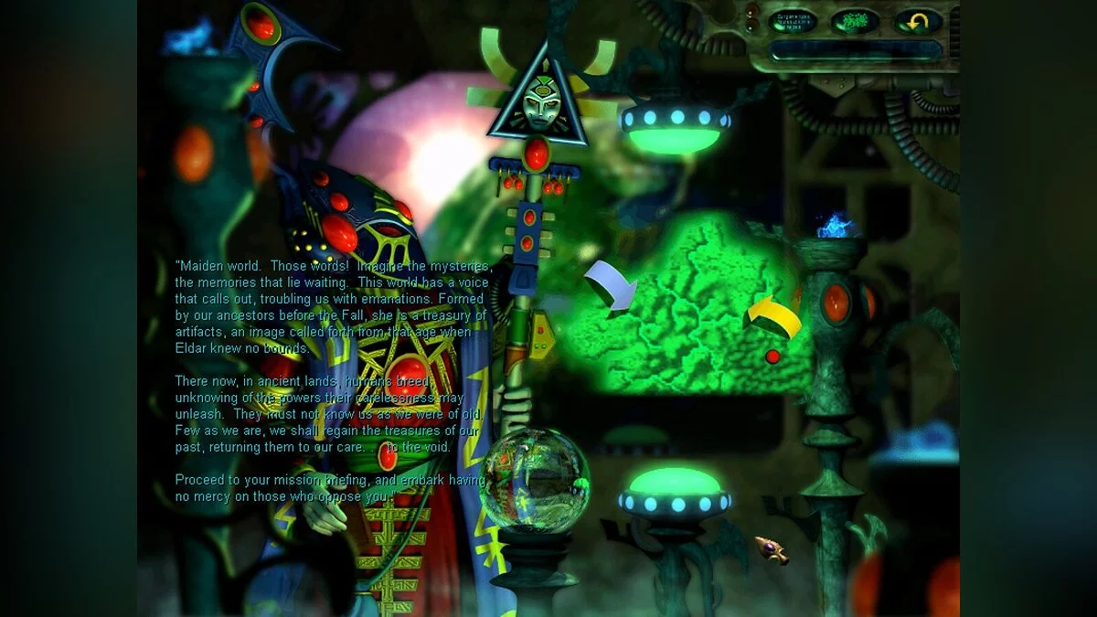 Вам необходимо отправиться в фантастический мир, вдохновлённый настольными играми с миниатюрными фигурками от компании Games Workshop. Это мир, где бушуют бесконечные войны между различными расами, живущими в огромной и жестокой галактике. Среди них есть эльдары — древние и таинственные существа, являющиеся последними потомками когда-то великой цивилизации, которая господствовала над звёздами. Они скитаются по космосу на своих колоссальных кораблях-мирах, ища Девственные миры — планеты, созданные их предками в далёком прошлом.