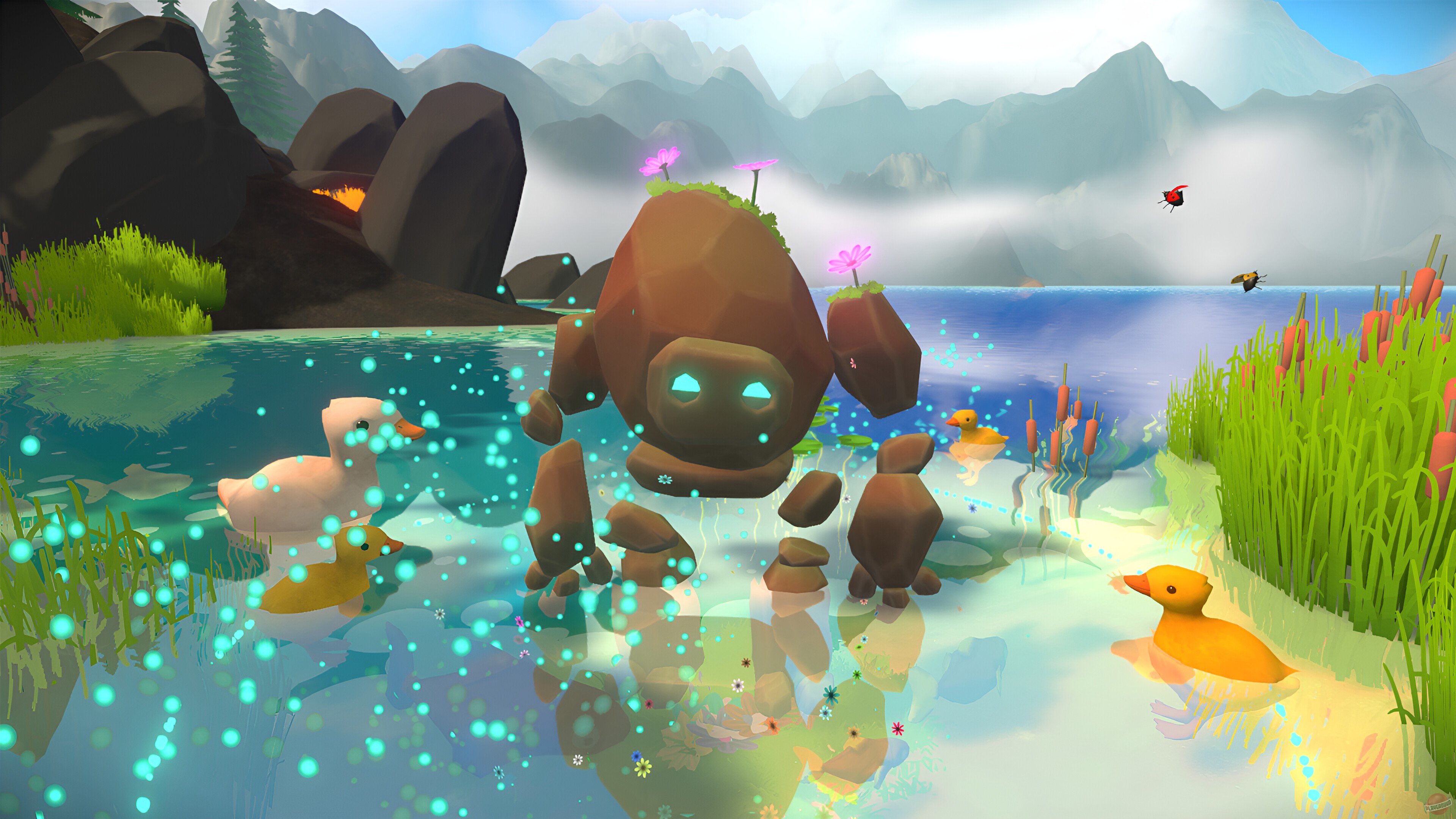 Медитативная бродилка, в которой нам предлагают управлять Големом — каменным созданием, на спине которого почему-то растут цветочки. Геймплей такой: бродим, собираем всякую мелочёвку, нажимаем на рычаги, двигаем камни — в общем, джентльменский набор для такого рода игр.