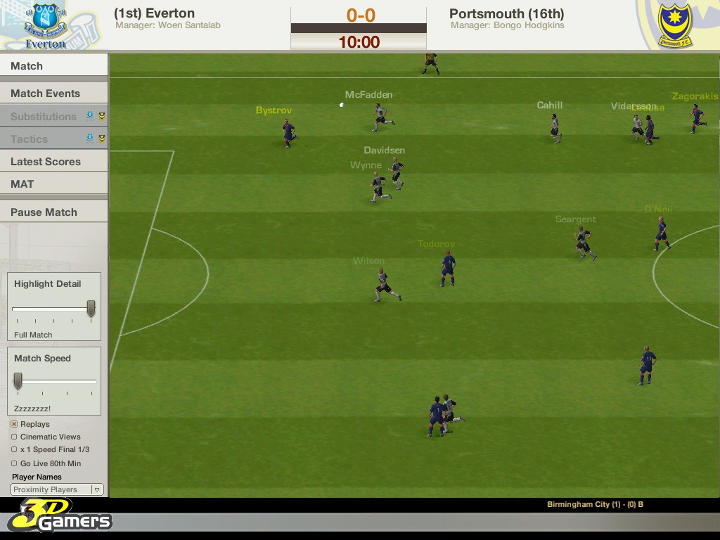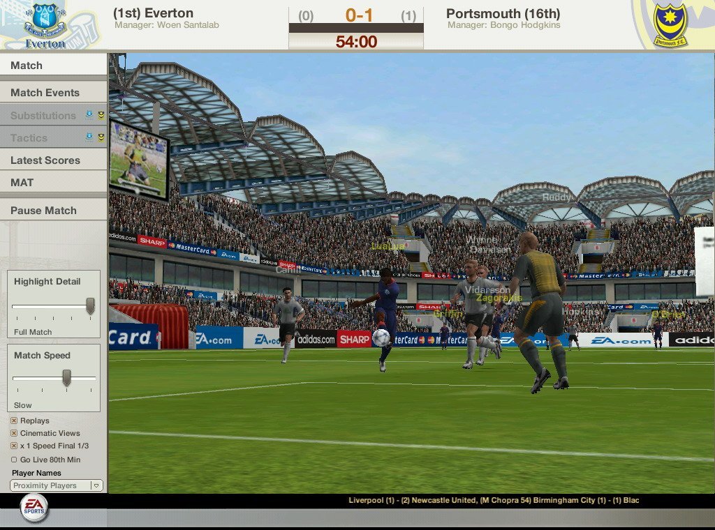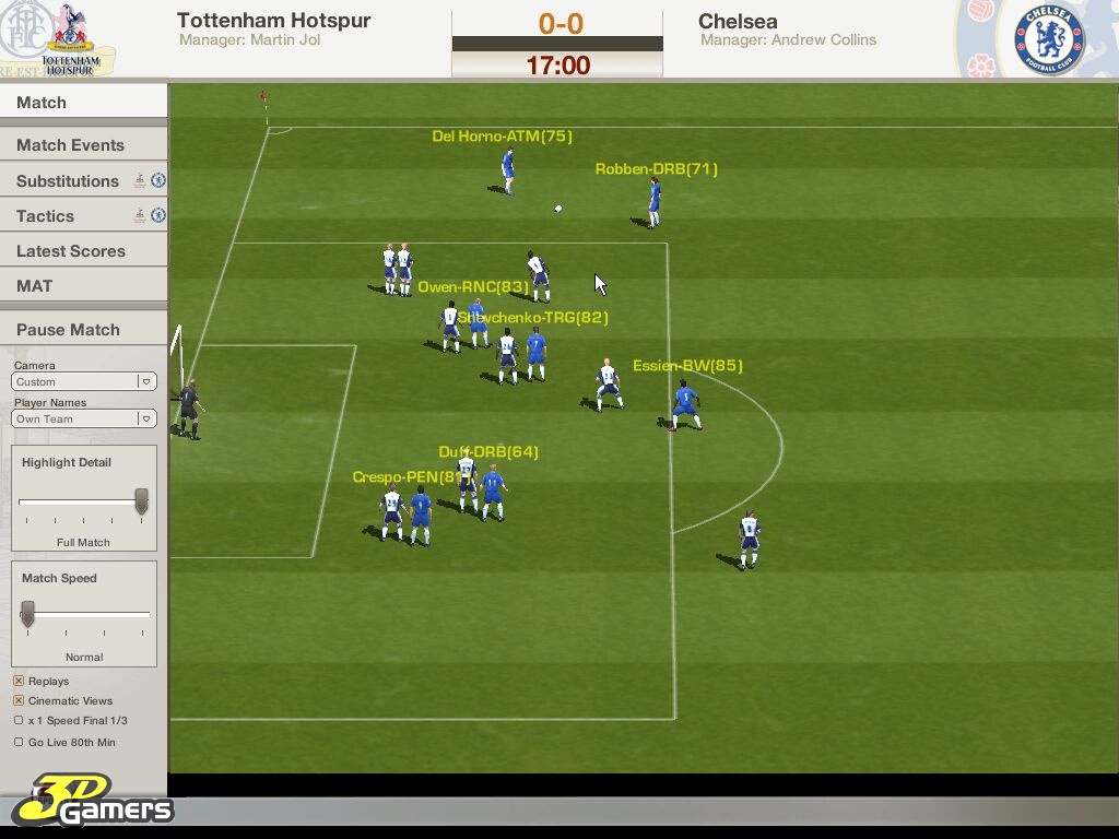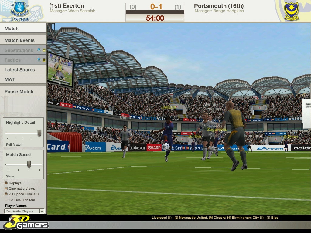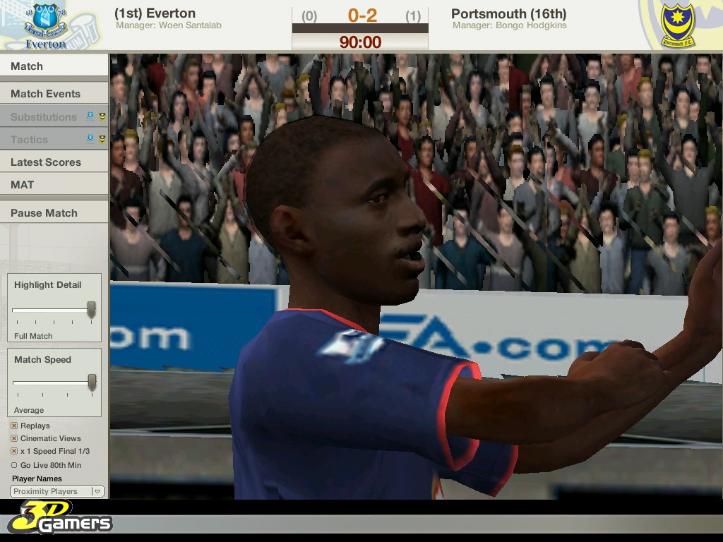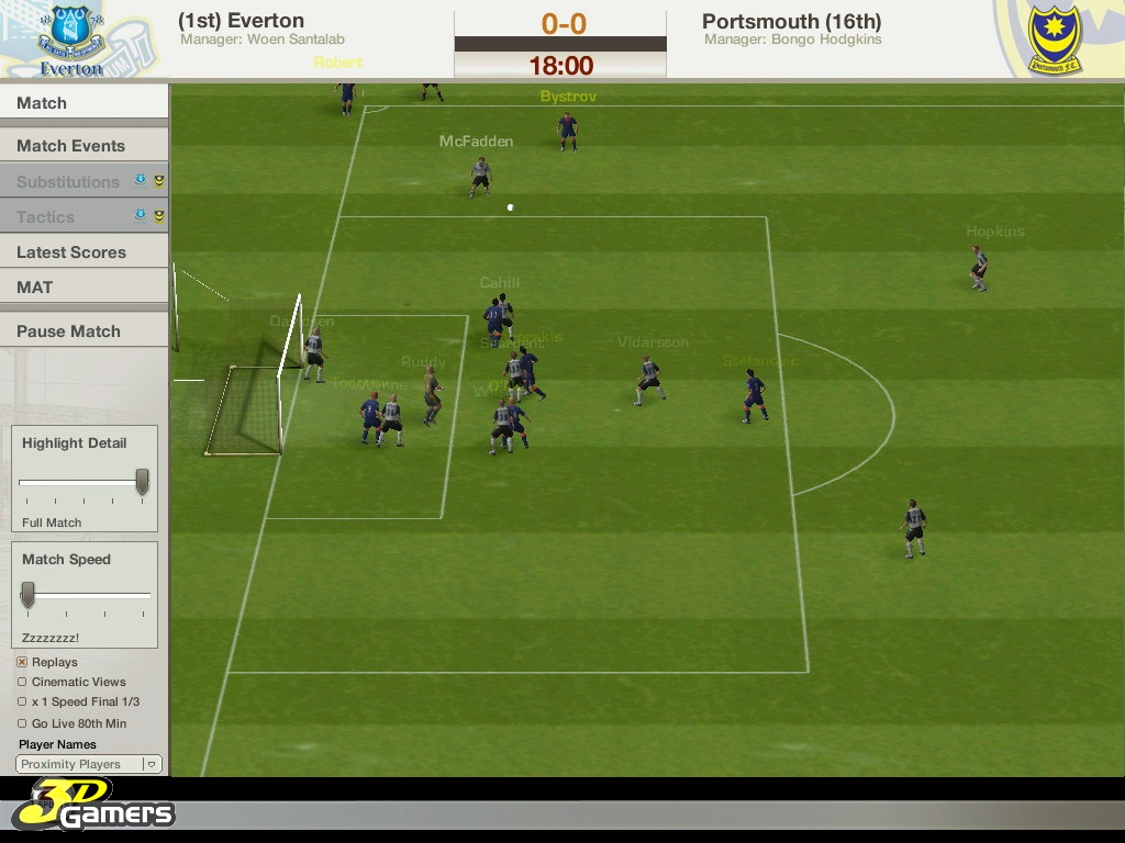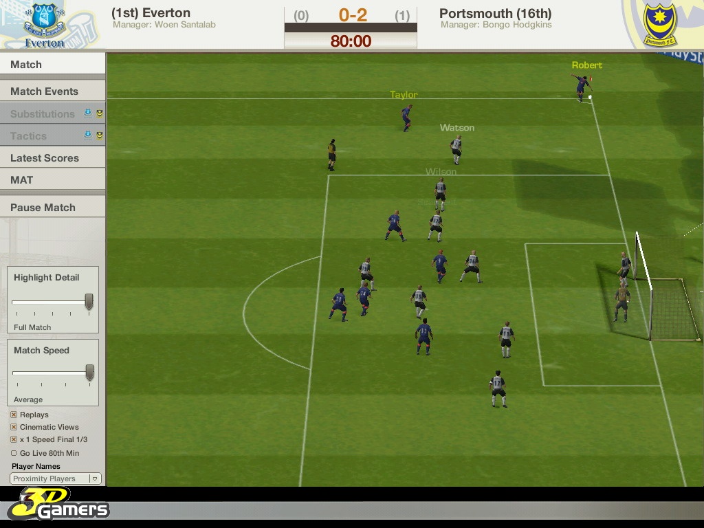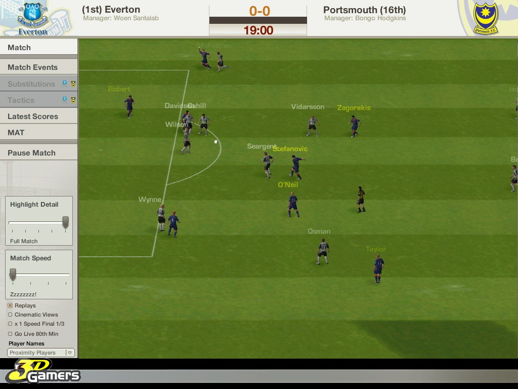 Во время межматчевых перекуров игроки со всего мира смогут пообщаться, обменяться информацией/слухами на специальном сайте Football World. Плюс, просмотр футбольных ристалищ можно будет вести в полом 3D, в реальном времени присматривая за своими подопечными и объемом их работ, дабы потом, на разборе полетов отвесить приличное количество веских слов откровенным халтурщикам и похвалить выделившихся трудяг.