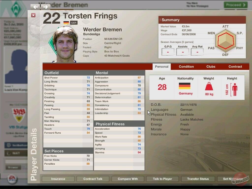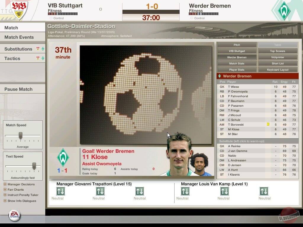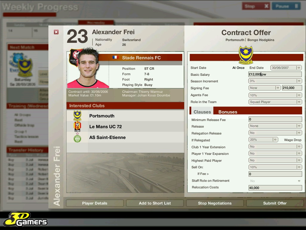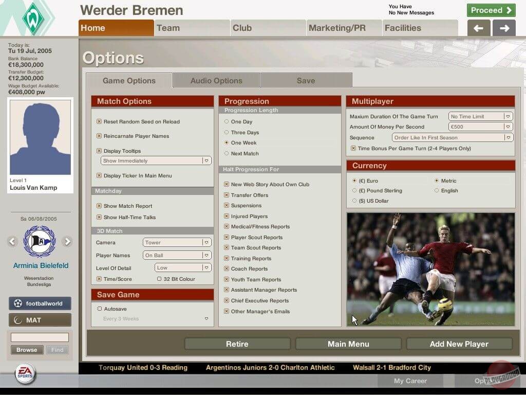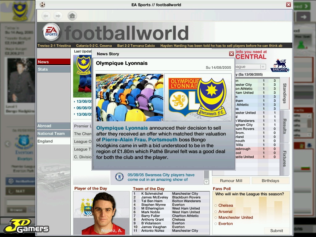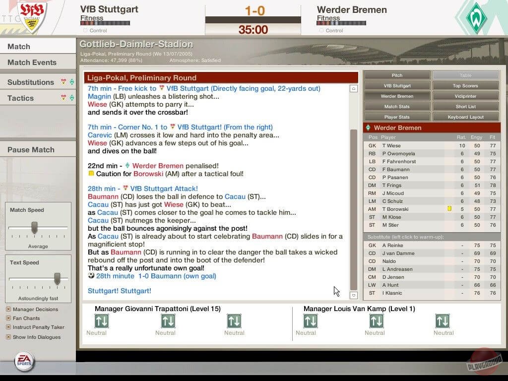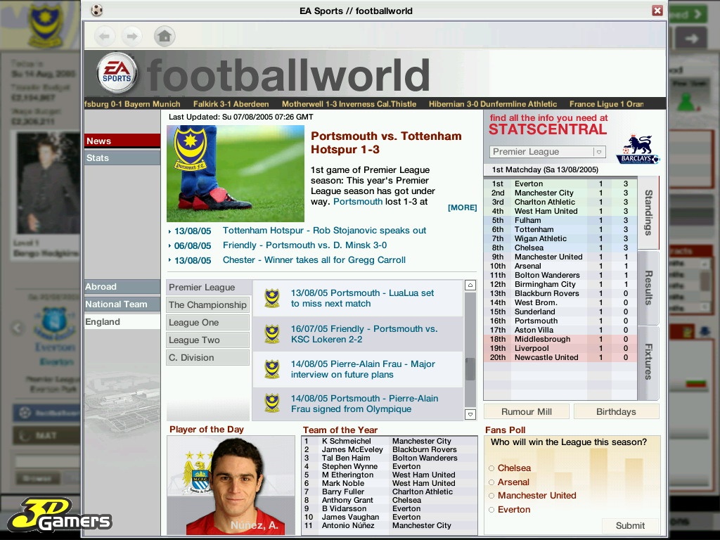 Во время межматчевых перекуров игроки со всего мира смогут пообщаться, обменяться информацией/слухами на специальном сайте Football World. Плюс, просмотр футбольных ристалищ можно будет вести в полом 3D, в реальном времени присматривая за своими подопечными и объемом их работ, дабы потом, на разборе полетов отвесить приличное количество веских слов откровенным халтурщикам и похвалить выделившихся трудяг.