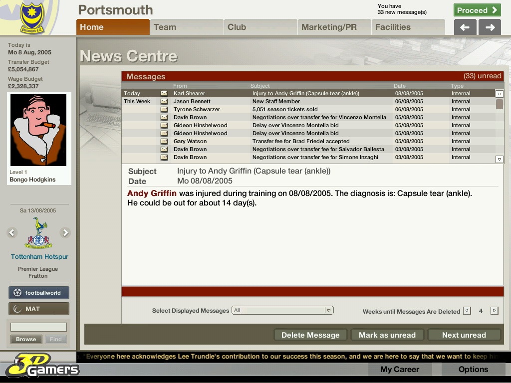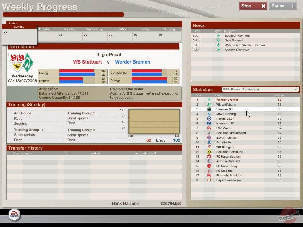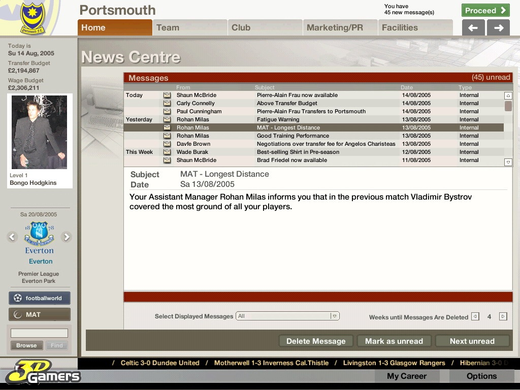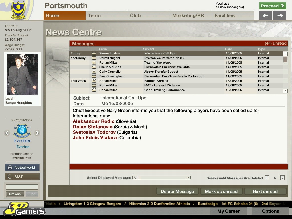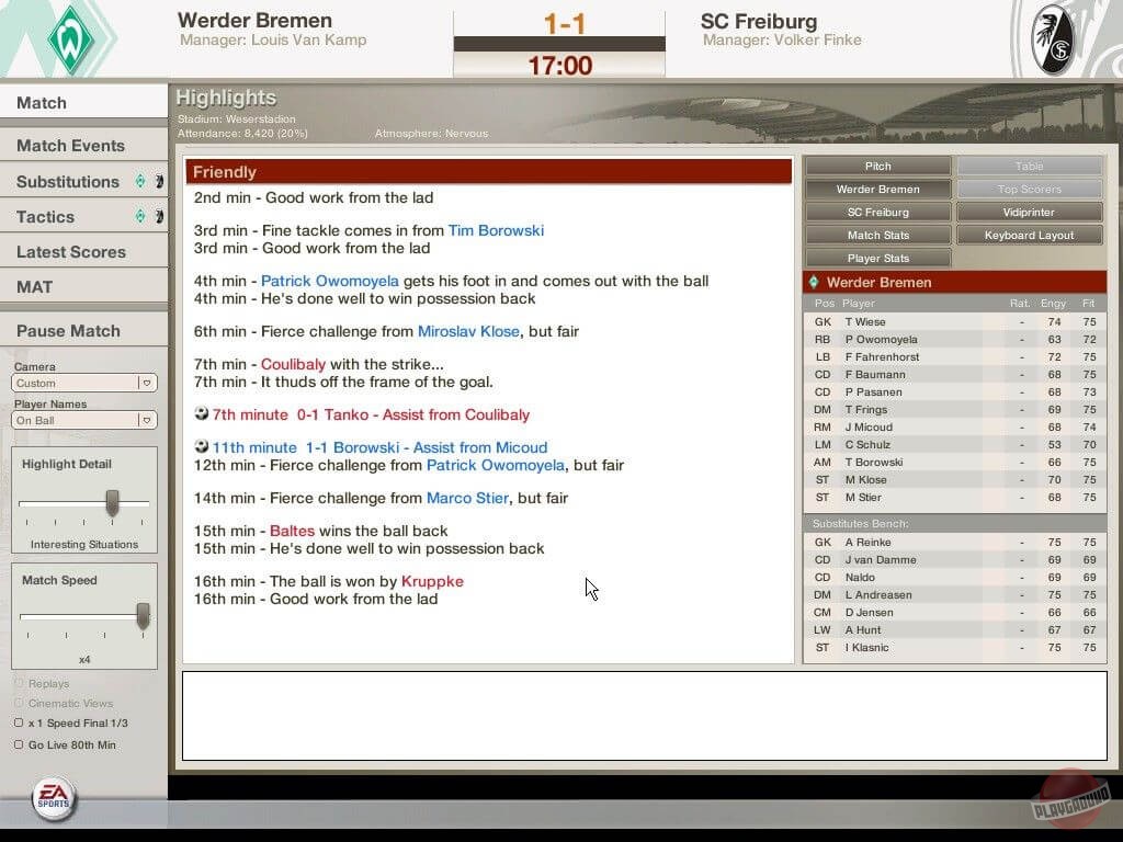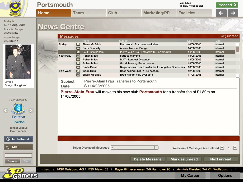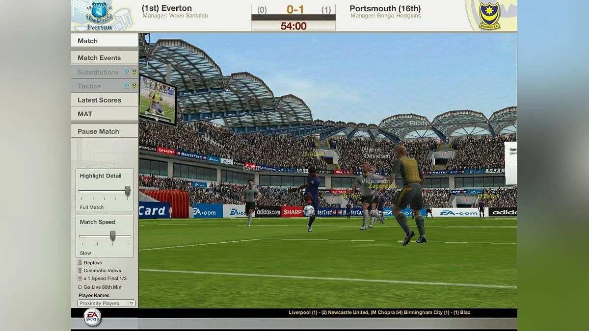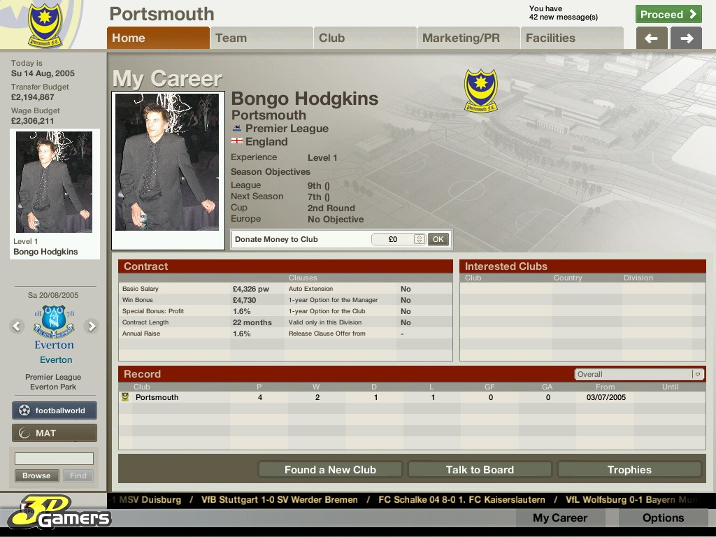 Во время межматчевых перекуров игроки со всего мира смогут пообщаться, обменяться информацией/слухами на специальном сайте Football World. Плюс, просмотр футбольных ристалищ можно будет вести в полом 3D, в реальном времени присматривая за своими подопечными и объемом их работ, дабы потом, на разборе полетов отвесить приличное количество веских слов откровенным халтурщикам и похвалить выделившихся трудяг.