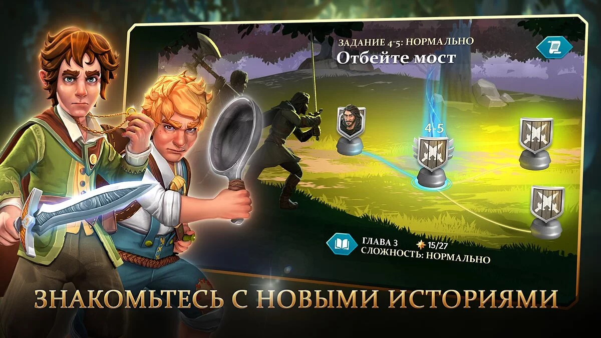 Условно-бесплатная ролевая игра с большой коллекцией героев из произведений Толкина. В Heroes of Middle-earth вы переживёте знаменитые события из «Властелина колец» и «Хоббита», а также примете участие в пошаговых битвах против сил зла Средиземья.