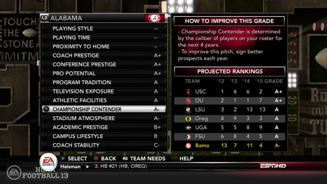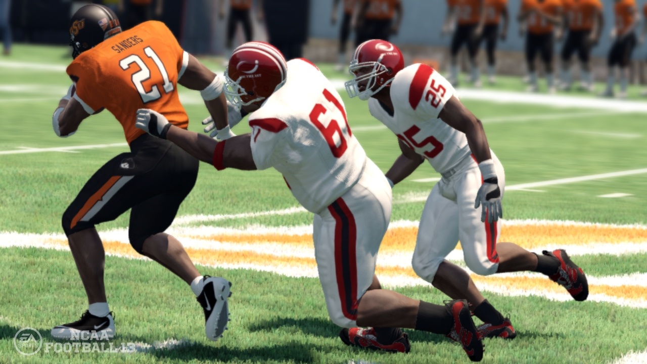 NCAA Football 13 - очередная игра серии американского футбола, в которой много нововведений в звуке и игровых элементах. Предлагает игрокам улучшенную графику, огромное количество команд, бесчисленное множество разнообразных турниров и несколько режимов, в том числе и сетевой.