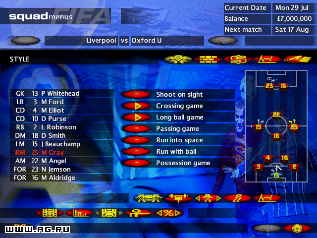 FIFA Soccer Manager — это стратегия с изометрическим видом с примесью бизнес-симулятора и спортивной игры от мастеров из студии Electronic Arts, Inc.. Издателем игры выступает Electronic Arts, Inc.. В некоторых кругах FIFA Soccer Manager также называют FSM.