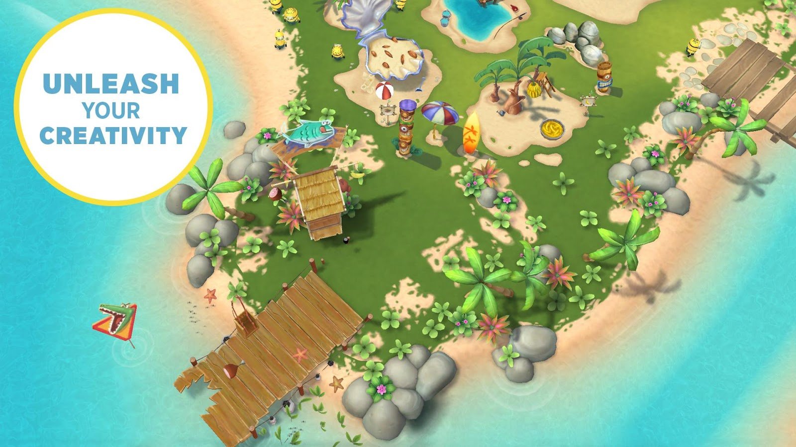 Игра прекрасно подойдет как для фанатов франшизы, так и для тех, кто просто любит добрый, красочный и не требующий постоянного внимания мобильный симулятор. В отличие от многих других игр своего жанра, Minions Paradise не заставляет вас томиться часами в ожидании завершения задач — все происходит быстро, весело и с обилием смешных анимаций. Вы будете собирать ресурсы, улучшать постройки и расширять территорию своего острова, наблюдая за тем, как ваши миньоны радостно танцуют, валяются в гамаках или устраивают эпические баталии с помощью водяных пистолетов. Это не просто игра, это ваш личный тропический курорт, управляемый самыми непредсказуемыми существами на планете!