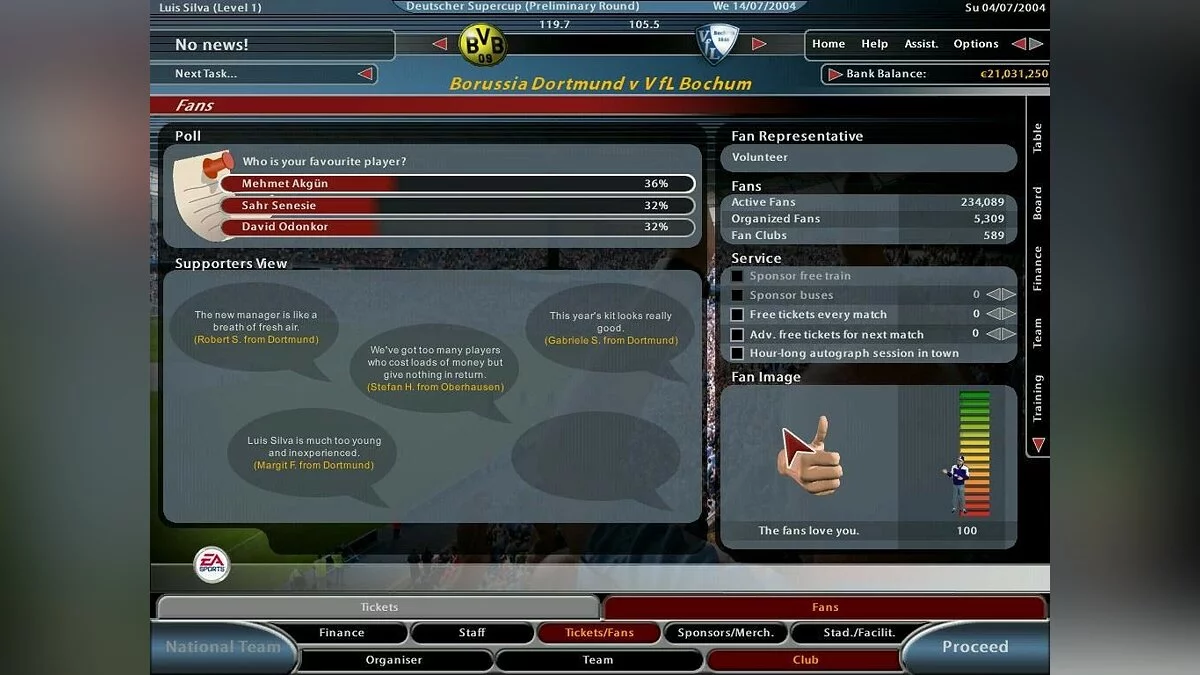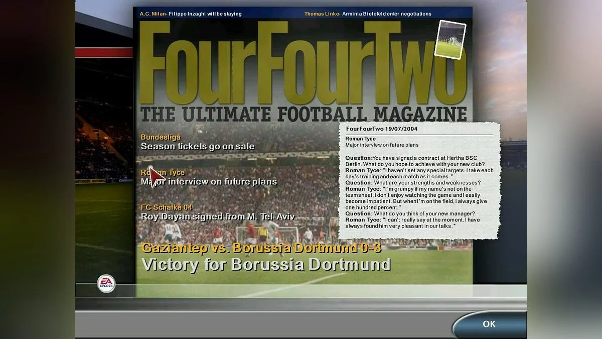 Симулятор менеджера футбольного клуба. Total Club Manager 2005 – это улучшенный hi-res интерфейс, возможность создания своего собственного клуба, новый трехмерный движок (отныне Electronic Arts можно не краснеть за качество матчевых трансляций) и огромное количество лицензированных «вещей», в лучших традициях EA.