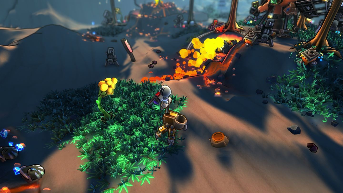 Забудьте про скучные башенки и однообразные волны врагов! Встречайте McDROID — это не просто tower defense, это настоящий космический цирк, где вы, милый паукообразный дроид по имени МакДроид, должны спасти свой родной (и слегка чокнутый) мир от нашествия мутантских растений. Представьте себе: вы прилетаете домой после долгого отпуска на другой планете, а там вместо приветливых соседей вас встречают агрессивные цветочки-убийцы и гигантские огурцы с недобрыми намерениями. Вот такая вот "зелёная революция"! Эта игра — уникальный гибрид жанров, где шутер от третьего лица встречается со стратегией в реальном времени и классическим tower defense, создавая безумно весёлый и хаотичный микс.