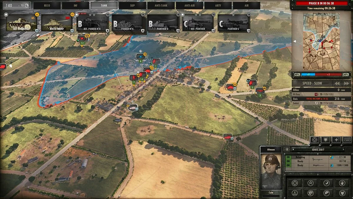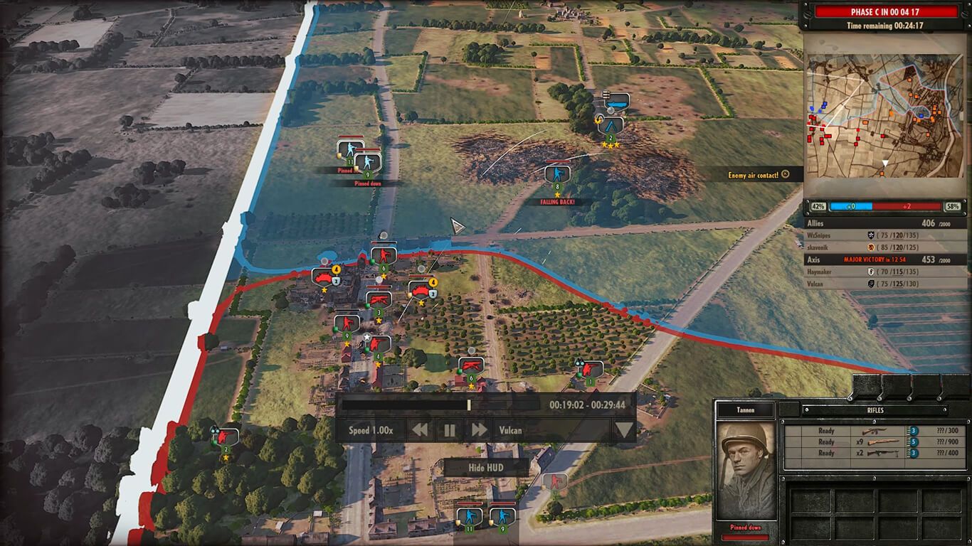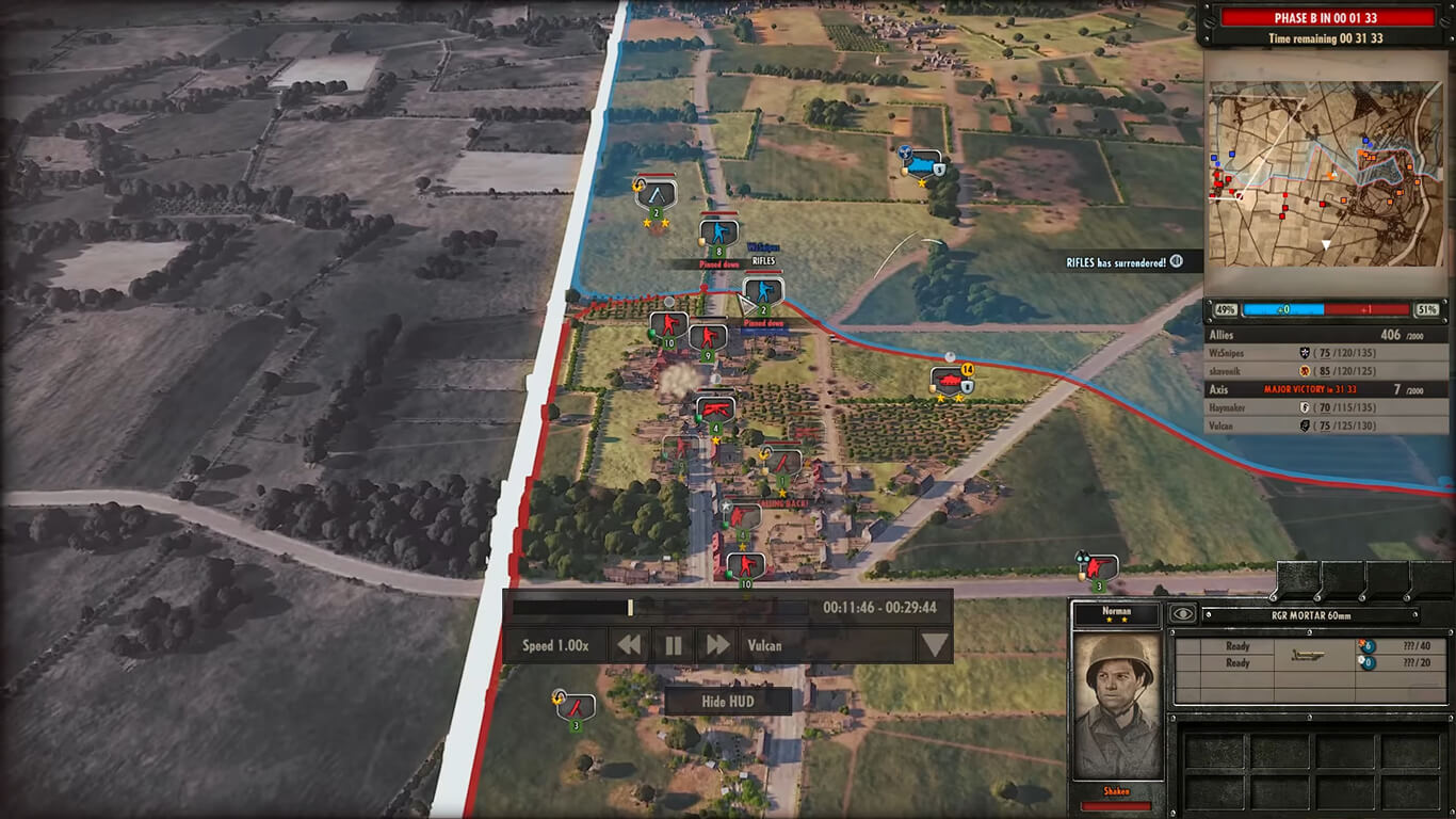 Геймплей Steel Division: Normandy 44 построен на уникальной системе трех фаз боя (А, Б и С), что добавляет невероятную глубину и реализм. Вы не просто вываливаете всю свою армию на карту с первой минуты. Сначала идут разведчики и легкие части, чтобы прощупать оборону противника, а потом, как в настоящем бою, на поле выходят основные силы и тяжелая бронетехника. Это не «клик-клак и в бой», а продуманная партия, где каждое решение имеет значение. Хочется послать в атаку танковую бригаду? Убедитесь, что у вас есть прикрытие с воздуха или артиллерия на случай, если враг спрячет противотанковые ружья в соседнем сарае. Игра славится своим историческим реализмом: каждая единица, от простого солдата до элитного танка, воссоздана с потрясающей точностью, так что вы не просто играете, а словно листаете живую страницу учебника истории, только с гораздо большим взрывным эффектом.