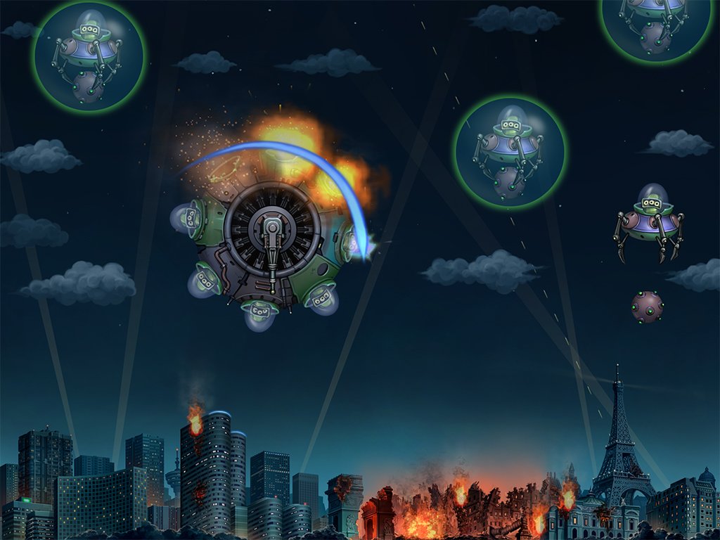 Геймплей Kiddy vs. Universum — это чистая, незамутненная радость для любителей мобильных экшенов и аркад. Суть проста до гениальности: вы находитесь внизу экрана, а волны враждебных кораблей-осьминогов обрушиваются на вас сверху и с флангов. Ваше оружие — не лазеры и не плазма, а ваши собственные телекинетические способности! Просто проводите пальцем по экрану (это называется «слайс», друзья), чтобы разрезать врагов, или делайте точечные тапы, чтобы обрушить на них всю мощь вашей космической ярости. Это как быть Джедаем, только вместо светового меча у вас палец, а вместо Империи — целая армия недовольных головоногих. В игре вас ждут 6 уникальных городов, каждый из которых — это 5 волн все более хитрых и опасных противников, а в конце каждого этапа вас поджидает эпичный босс-октопус со своими собственными трюками и слабостями.