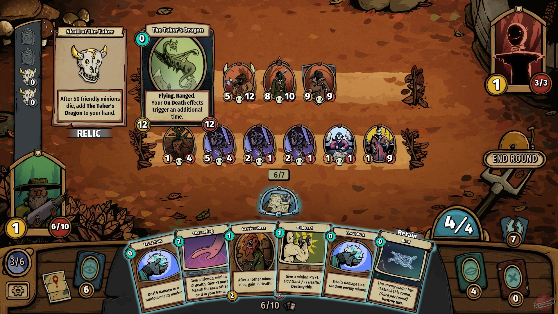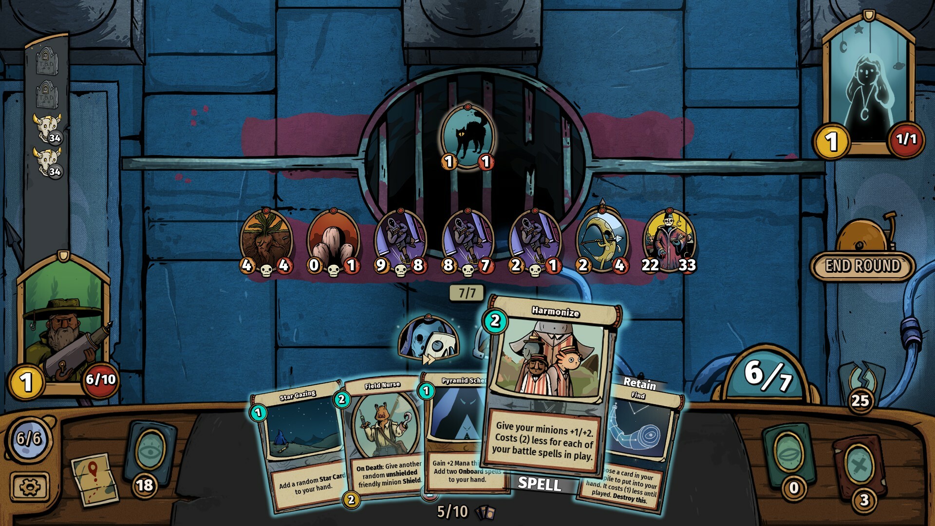 Карточная игра с автоматическими сражениями, где нужно собирать колоду из миньонов, заклинаний и всяких артефактов. Цель довольно-таки странная — стать Луной. Звучит абстрактно, но суть в том, что вы пробираетесь через череду противников, постепенно улучшая свою колоду и команду существ. Геймплей устроен так: после каждой победы можете взять новые карты, строить синергии и комбинации. Также перед каждым боем вы расставляете своих миньонов на поле, можете их переставлять местами, кастуете заклинания — а дальше они сражаются сами. Только стоит не забывать, что у вас есть мана, которой надо распоряжаться с умом, и здоровье, которое нужно беречь.