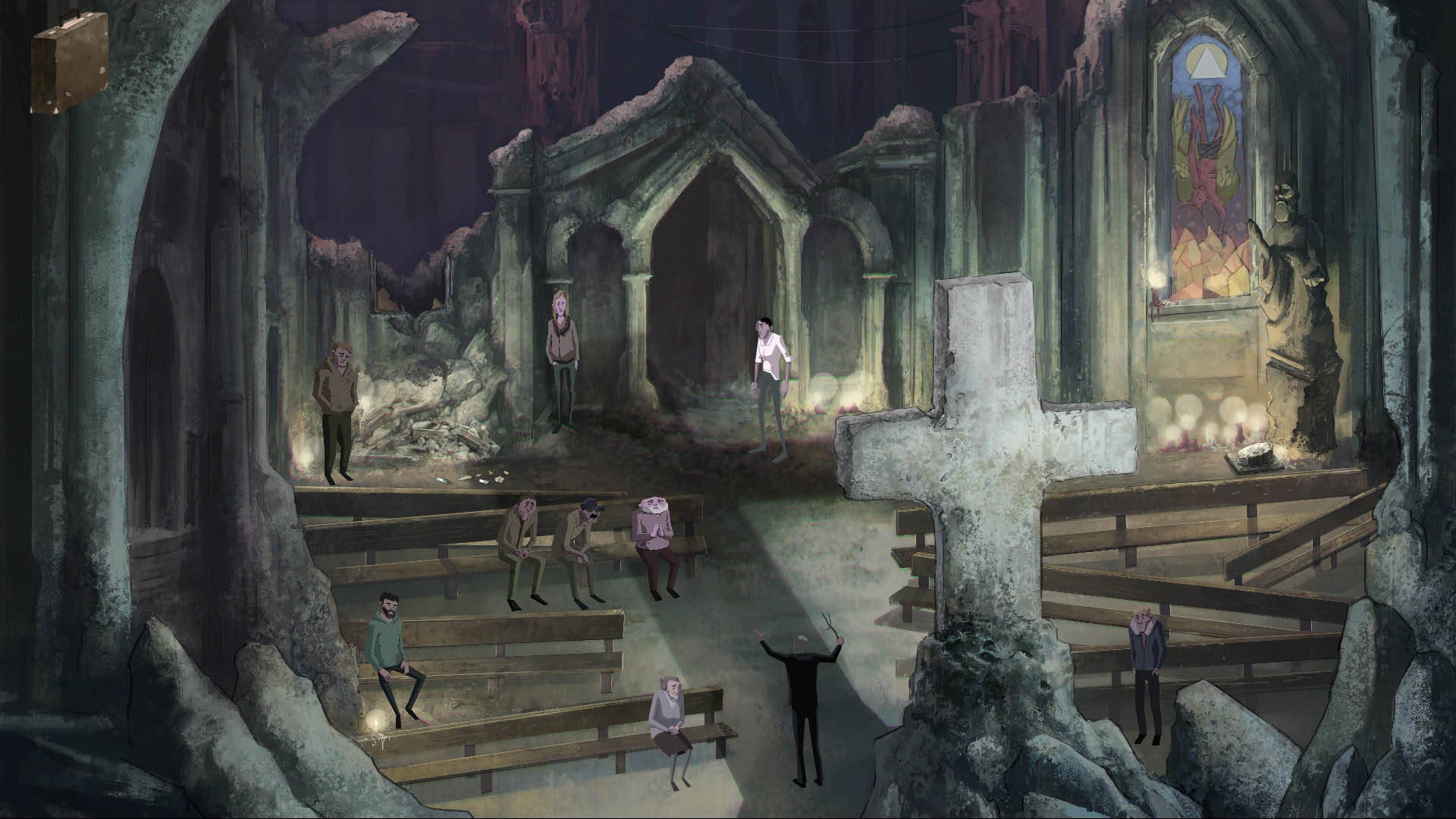 Dead Synchronicity: Tomorrow Comes Today — это классический point-and-click квест для тех, кто скучает по временам LucasArts, но хочет чего-то более взрослого и мрачного, чем «Маньяк-Маньяк». Здесь вас ждёт чистый, без компромиссов, приключенческий геймплей: вы будете щёлкать по всему подряд, комбинировать самые странные предметы (да, даже этот ржавый гвоздь может спасти мир!) и разгадывать головоломки, которые иногда заставят вас схватиться за голову и задуматься, а не пора ли вам самому лечиться от «Большого Распада». Графика выполнена в уникальном экспрессионистском стиле, который идеально передаёт атмосферу всеобщего безумия и отчаяния. Это как если бы фильм Дэвида Линча и комиксы Фрэнка Миллера решили завести ребёнка в мире «Игры Престолов» после ядерной зимы.