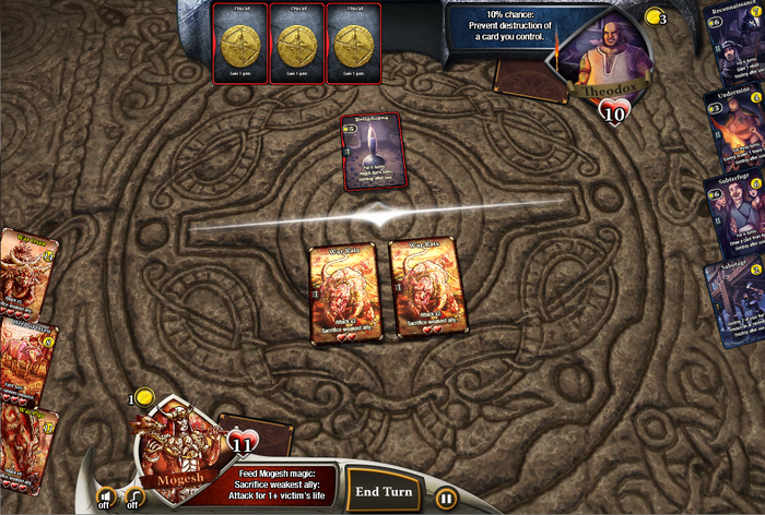В War of Omens вас ждёт не просто карточная игра, а настоящий стратегический вызов. Вам предстоит собирать коллекцию карт, создавать непобедимые колоды и вступать в быстрые, но глубокие пошаговые сражения. Выберите свою сторону: древние и могущественные Веспитоле, жестокие и прямолинейные Дарамек, загадочные Метрис или коварные Эндазу — каждая фракция обладает своим уникальным стилем игры, героями и механиками. Это как «Игра престолов», только вместо драконов у вас на руках карты героев, способные одним кликом отправить армию противника в небытие. А ещё здесь есть специальные карты-монеты, которые добавляют дополнительный слой тактики, заставляя вас думать не только о том, кого атаковать, но и как лучше всего потратить свои ресурсы.