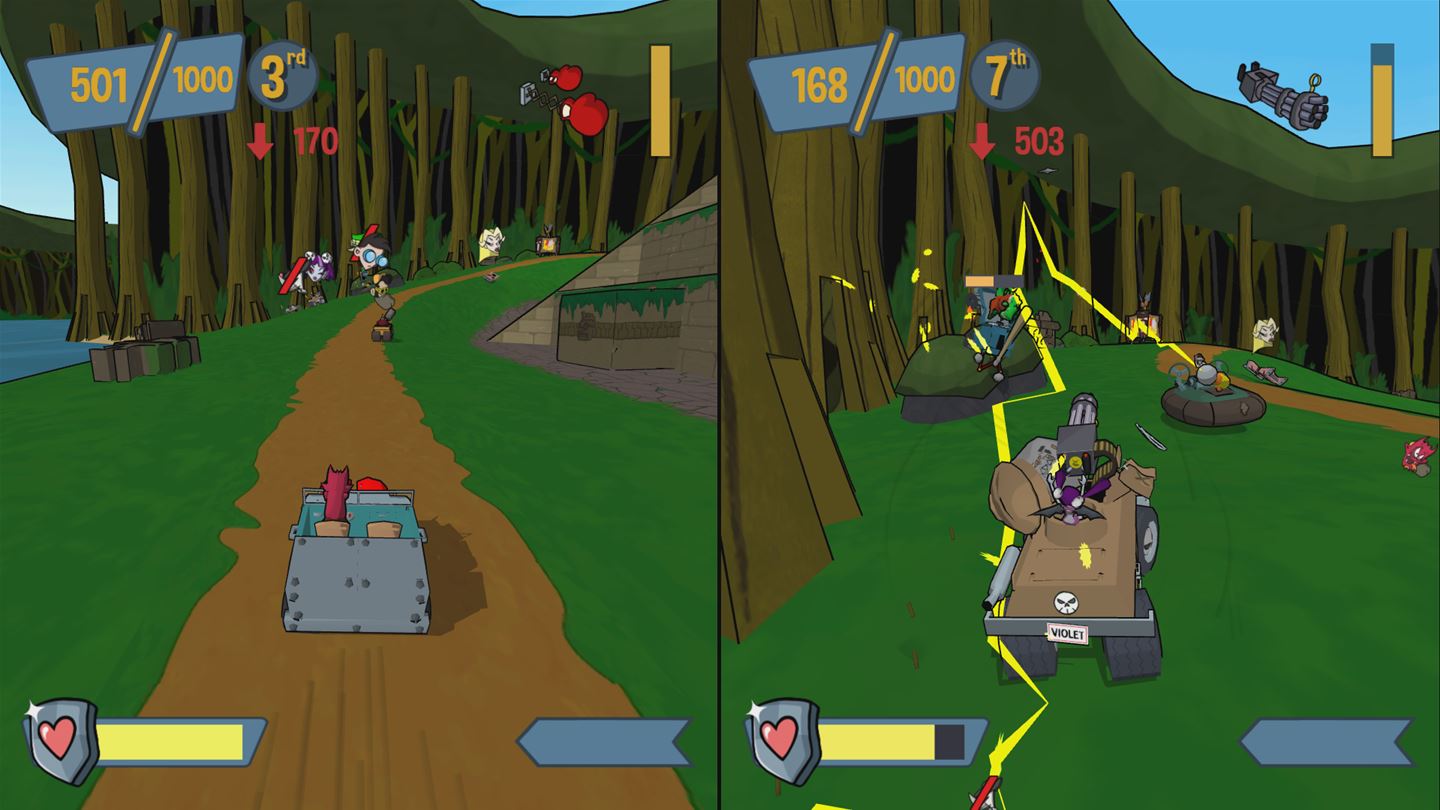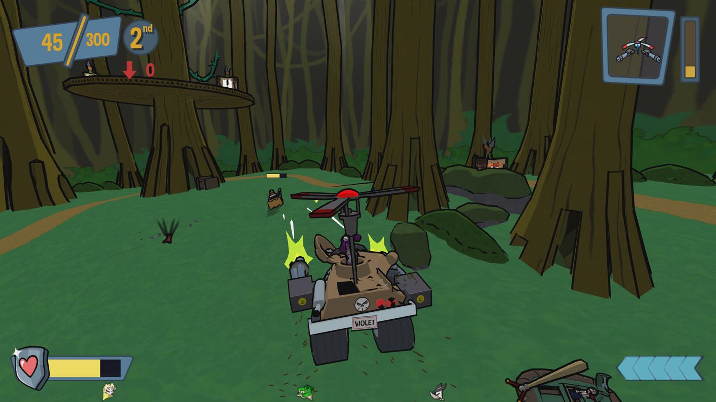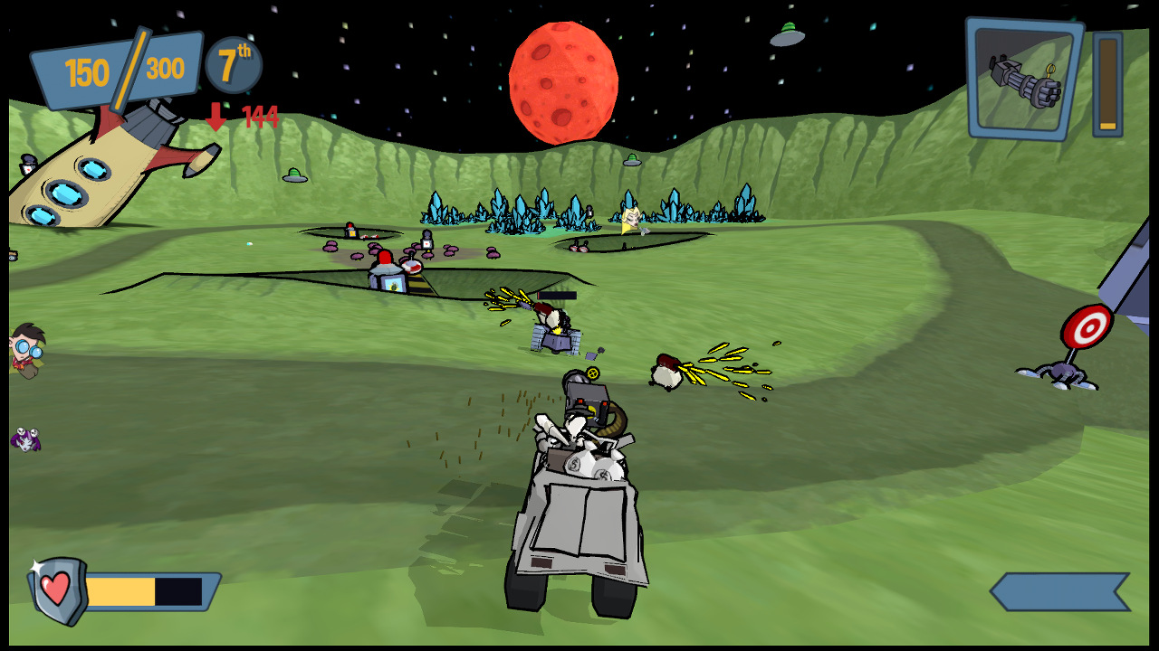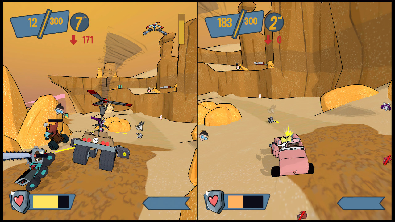 Cel Damage HD — это не просто гонки, это сумасшедший микс жанров: аркадные гонки, шутер от третьего лица и боевая арена в одном флаконе. Ваша задача — не прийти первым к финишу, а набрать как можно больше очков, круша, взрывая и отправляя в нокаут своих противников. Вас ждут 13 уникальных уровней, от пустынных каньонов до фантастических локаций, каждый из которых полон ловушек, секретов и интерактивных объектов для максимального хаоса. Выберите одного из 10 персонажей (6 доступны с самого начала), у каждого из которых свой стиль вождения и уникальное оружие: от классических пушек и мин до бензопил и даже телепортационных устройств. Это идеальная игра для тех, кто ищет весёлые гонки с разрушениями, динамичный мультиплеер и безумный экшен без правил.