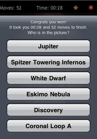 Забудьте про скучные пятнашки из детства! Встречайте Awesome Space Slider Puzzles — головоломку, которая отправит ваш мозг в увлекательное космическое приключение прямо с экрана вашего устройства. Это не просто игра-пазл, это ваш личный билет на экскурсию по Солнечной системе, где вместо гида — хитроумный алгоритм, а вместо автобуса — поле для перемещения плиток. Ваша миссия, если вы её примете (а вы точно примете!), — навести порядок в звёздном хаосе, собрав из разрозненных фрагментов великолепные фотографии планет, туманностей и других завораживающих космических объектов. Готовы ли вы доказать, что ваш IQ выше, чем орбита МКС?