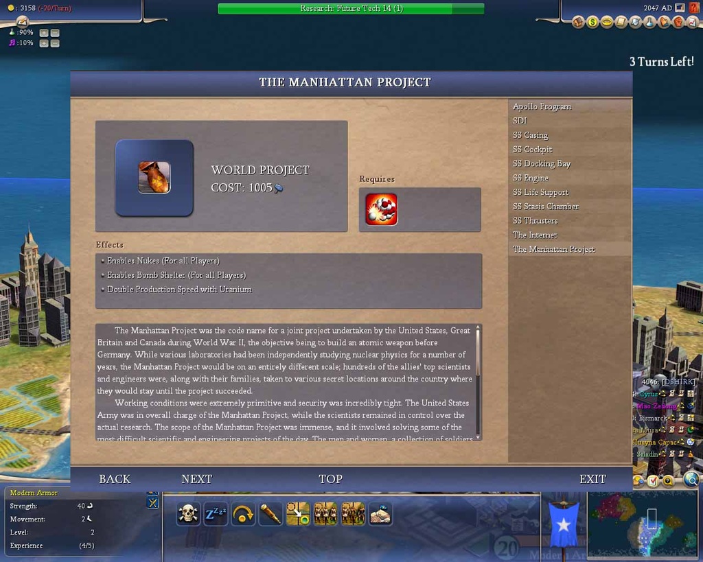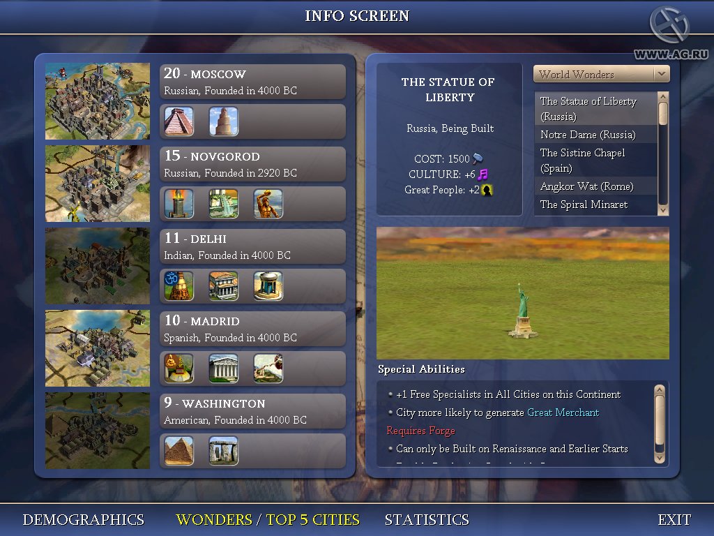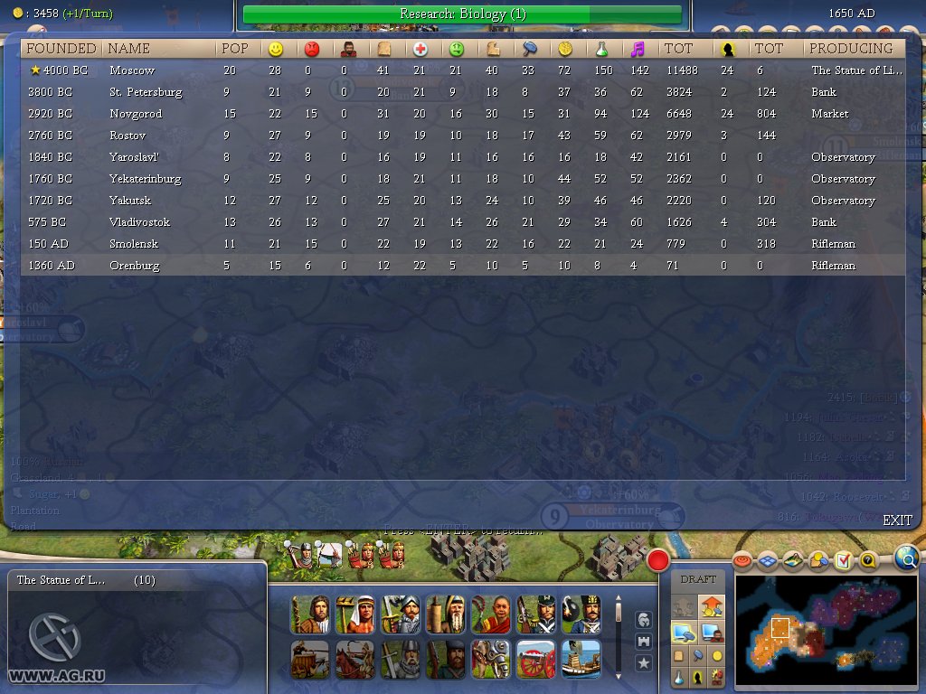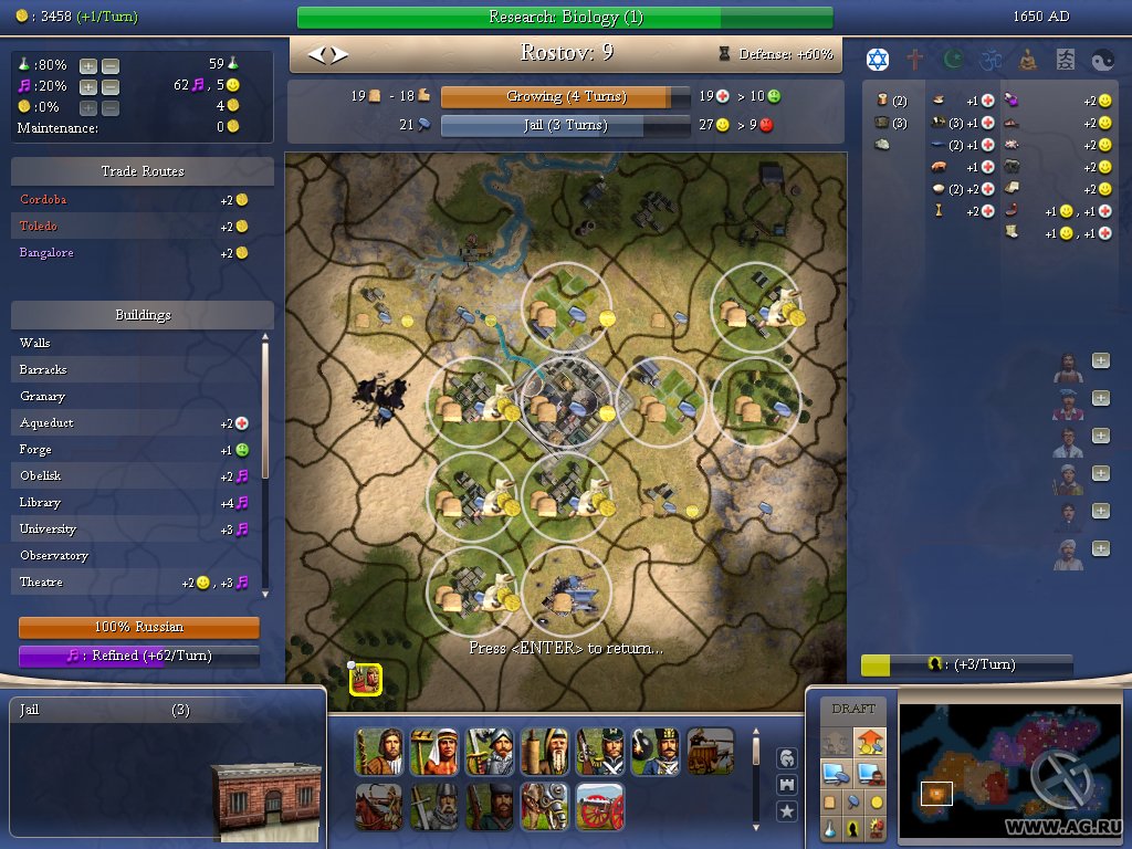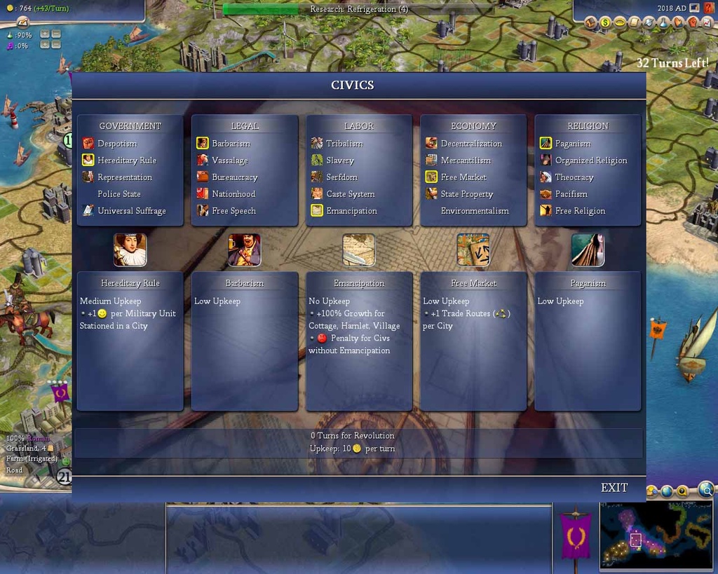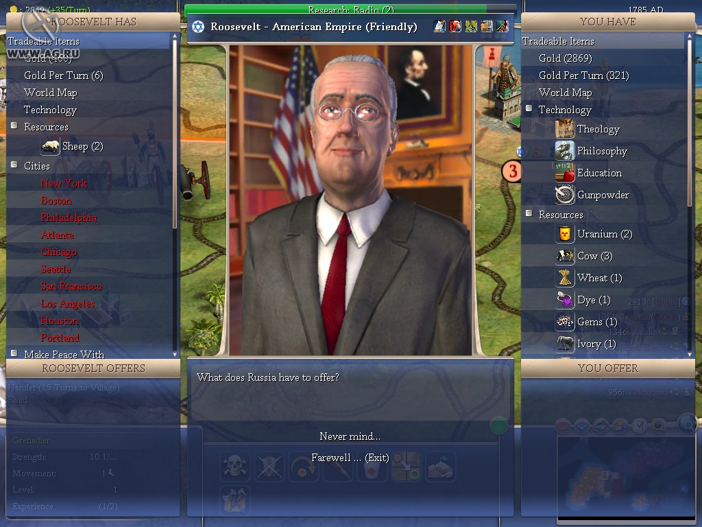 Геймплей Civilization IV — это как шахматы, но вместо коней и слонов у вас танки и атомные бомбы, а вместо доски — вся Земля. Вы выбираете одну из множества исторических наций (от Рима до Америки) и ведёте её через тысячелетия, развивая науку, культуру, религию и, конечно же, армию. Система исследований позволяет вам открывать новые технологии, от колеса и письменности до лазеров и робототехники. А продуманная дипломатия даёт возможность заключать союзы, торговать ресурсами или просто объявлять войну соседу, потому что его города «слишком близко к вашим». Каждое решение имеет последствия, и каждый ход — это шаг к величию или к полному краху.