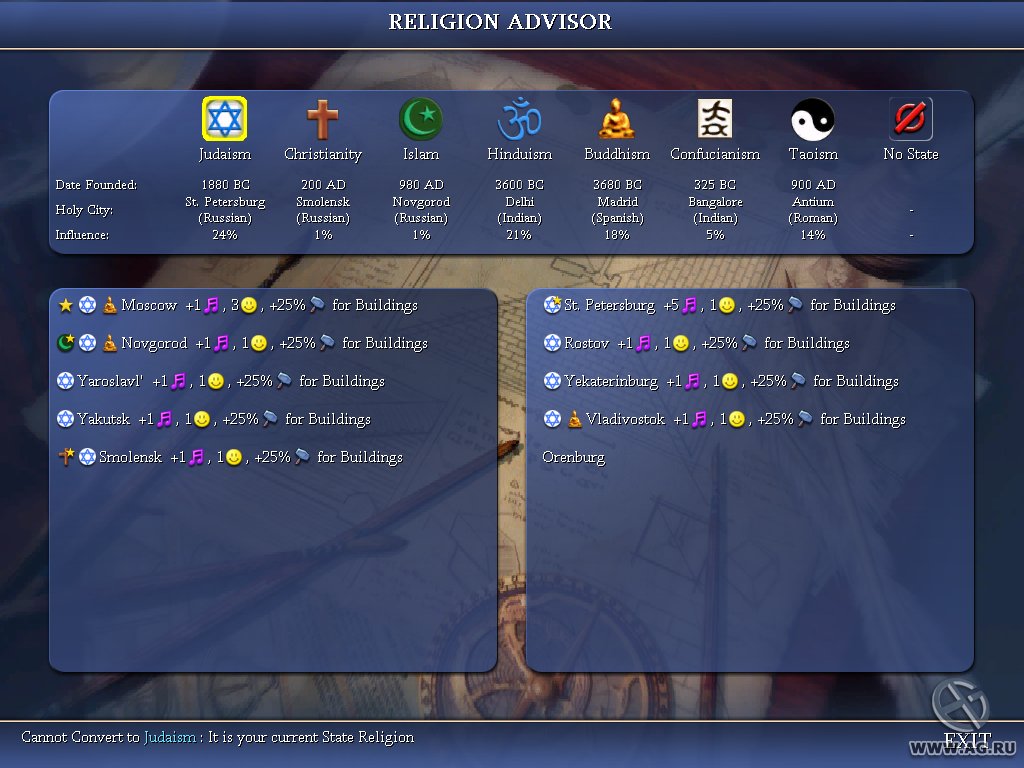 Особенностью Sid Meier's Civilization IV стала её невероятная глубина и атмосфера. Игра не просто предлагает вам строить города, она буквально оживляет их. Вы услышите величественные голоса, поющие на латыни и санскрите, когда будете основывать религии, и почувствуете трепет, отправляя свой первый корабль в далёкие земли. Модификации и дополнения, такие как Warlords и Beyond the Sword, добавили ещё больше слоёв стратегии, включая героев-военачальников и сложные международные отношения. Это не просто игра, это цифровая песня о человечестве, где вы — композитор. Так что, если вы любите пошаговые стратегии, глобальные войны, развитие технологий и всё, что связано с созданием собственной империи, Civilization IV — ваш идеальный выбор для бесконечных часов увлекательного геймплея.