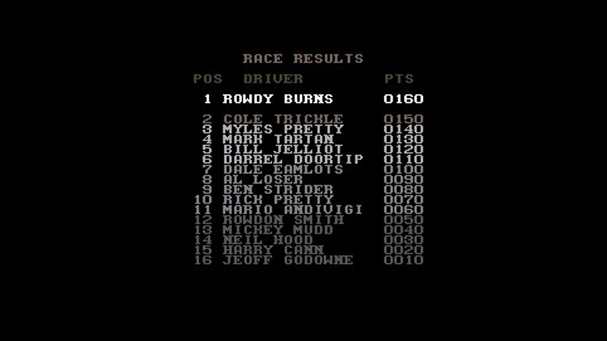 Days of Thunder предлагает классический геймплей аркадного автосимулятора с уклоном в реалистичность (ну, насколько это возможно для начала 90-х). Выберите один из нескольких режимов: от быстрой гонки (Quick Race) до полномасштабной карьеры (Career Mode), где вам предстоит пройти через шесть напряженных заездов на разных трассах, включая знаменитую Дейтона-Бич. Не забывайте про уникальный Режим Дерби (Derby Mode), где целиком и полностью посвящен искусству красиво и эффектно врезаться в соперника — идеальный способ выплеснуть все эмоции после тяжелого рабочего дня! Управление интуитивно понятное, но не думайте, что это будет легко: на поворотах вас ждет суровое испытание, ведь без активного торможения ваш болид с радостью познакомится со стеной безопасности, подарив вам соответствующий звуковой эффект, который запомнится надолго.