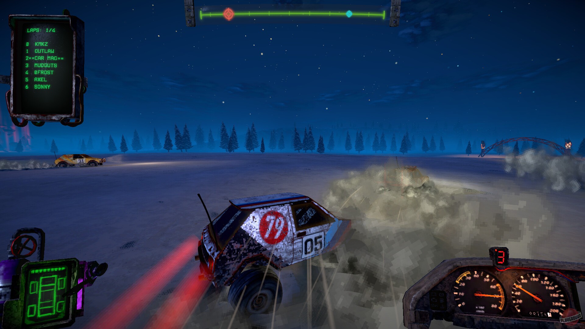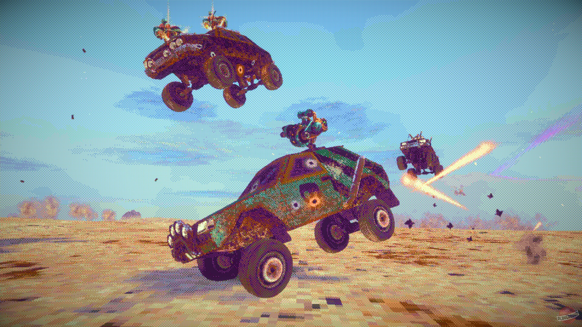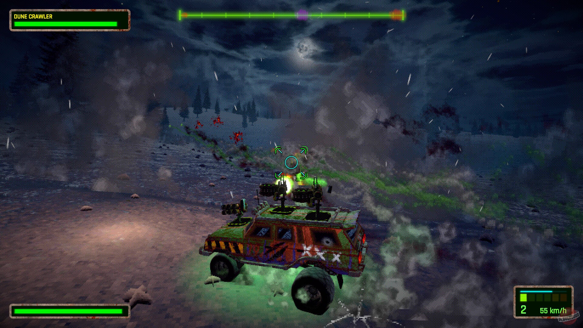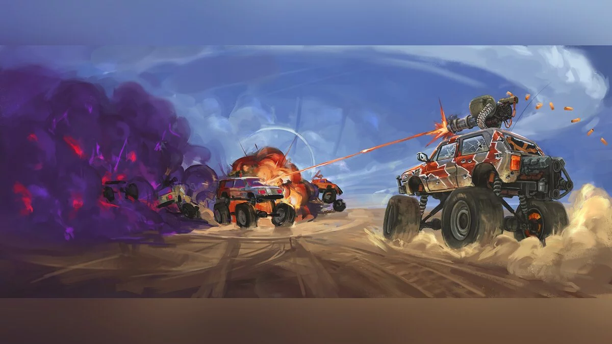 Вам предстоит занять место за рулём боевой машины, снарядить её разнообразным вооружением и отправиться в путешествие по извилистым дорогам пустынных земель. Перед началом заезда у вас будет возможность настроить свой автомобиль, подобрав оптимальное снаряжение под ваш индивидуальный стиль вождения. Не забудьте также о визуальной кастомизации — разнообразные наклейки помогут сделать ваше транспортное средство уникальным.