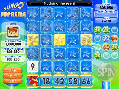 Забудьте про скучные кроссворды и пасьянсы! Встречайте Slingo Supreme — это не просто логическая игра, это настоящий гибрид слотов и бинго, который заставит ваш мозг работать на полную катушку, а пальцы — танцевать от нетерпения. Представьте: у вас есть классическое поле 5x5, заполненное цифрами, как у бабушкины карточки для лото, но вместо того чтобы ждать, пока ведущий выкрикнет «Бинго!», вы сами крутите барабаны, как в казино. Ваша задача — совмещать выпавшие на слотах числа с теми, что на поле, чтобы зачеркивать их и собирать очки. Это как если бы Джеймс Бонд решил расслабиться не за покером, а за очень умной и веселой головоломкой!